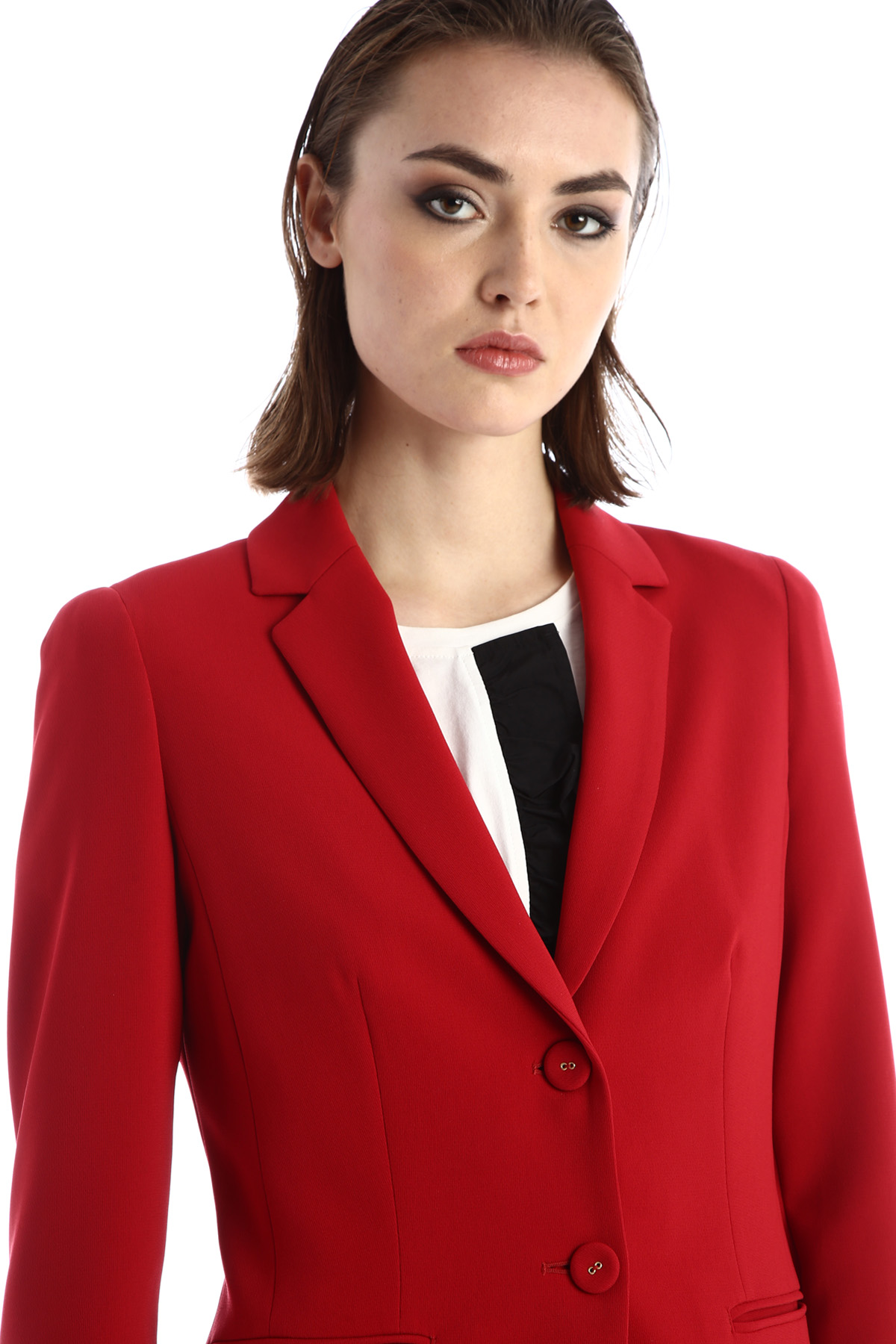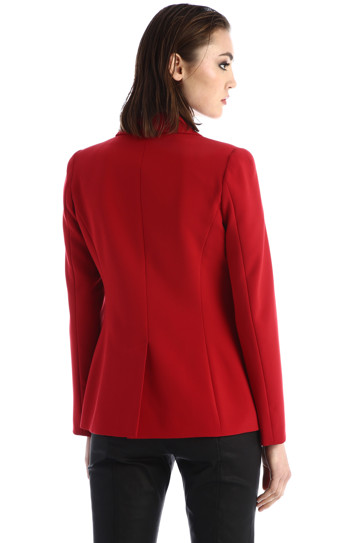 Blazer dalla linea sfiancata realizzato in cady, con collo a rever, maniche lunghe, tasche a doppio filetto, spacco nel retro e allacciatura a monopetto con bottoni. Foderato.
