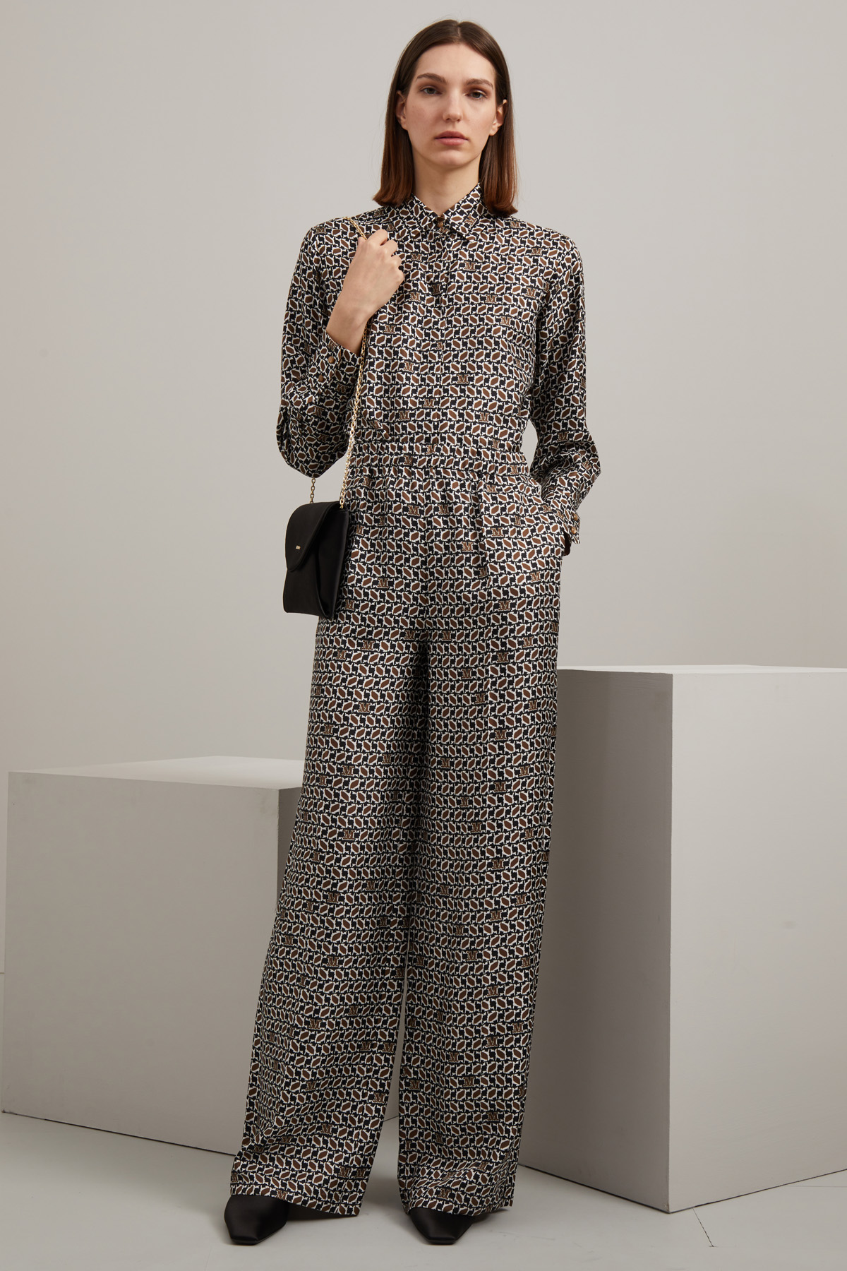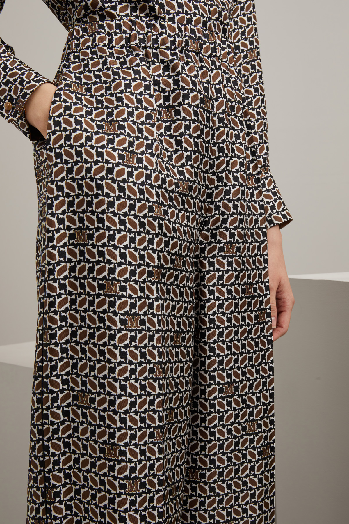 Pantaloni dalla linea morbida realizzati in twill di pura seta stampata, con inserto elastico in vita, tasche alla francese sul davanti e profili rifiniti da piping.