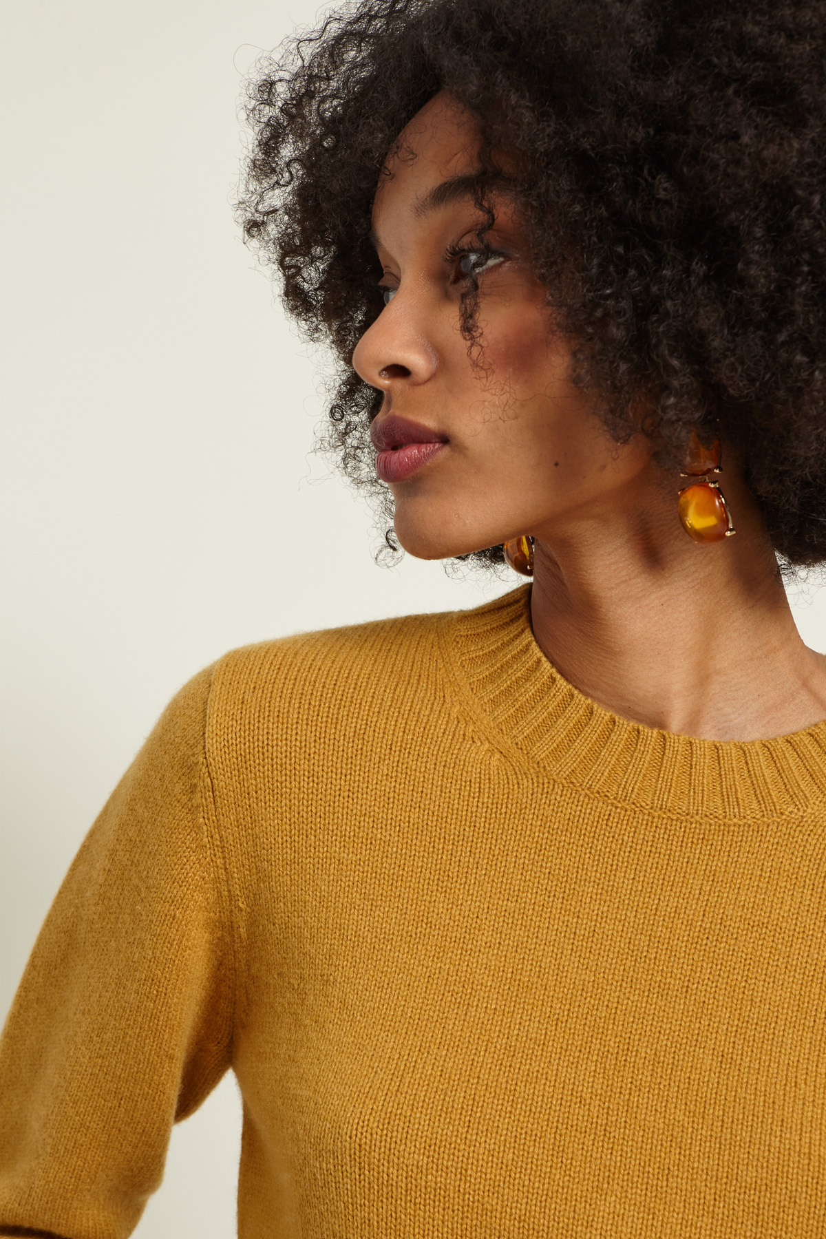 Maglia cropped dalla linea aderente realizzata in filato di puro cashmere, con collo montante, maniche lunghe e profili rifiniti a coste.