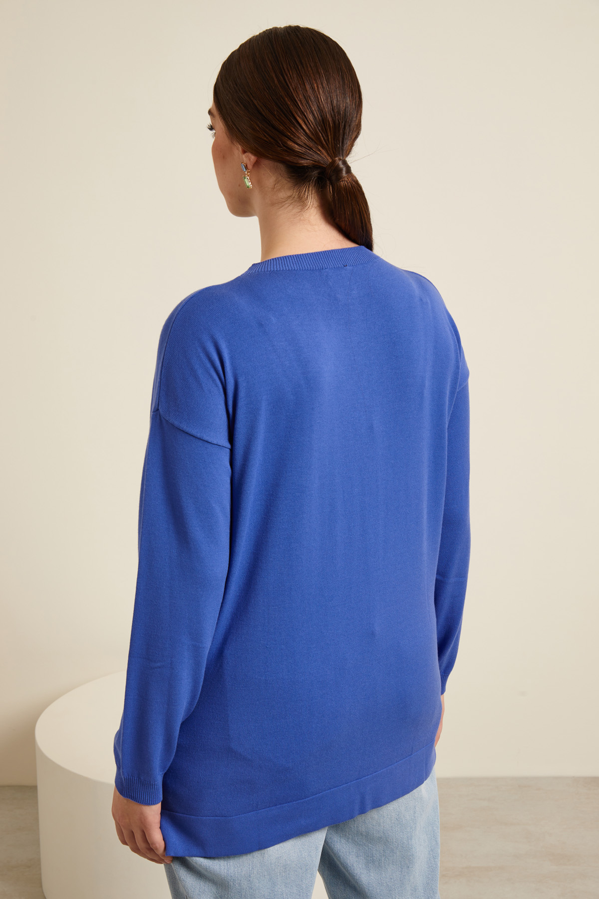 Maglia dalla linea morbida in viscosa stretch con girocollo, maniche lunghe dal giro sceso, spacchetti laterali al fondo. Collo e polsini rifiniti con lavorazione a coste.