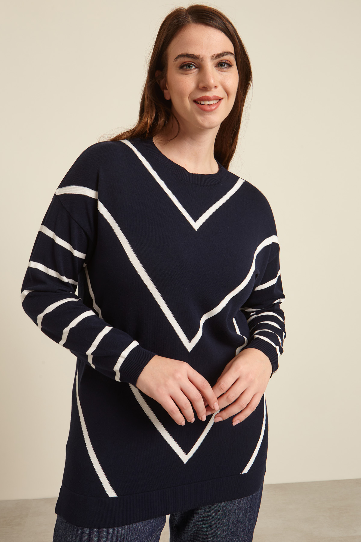 Maglia dalla linea morbida in viscosa stretch con girocollo, maniche lunghe dal giro sceso, spacchetti laterali al fondo. Collo e polsini rifiniti con lavorazione a coste.