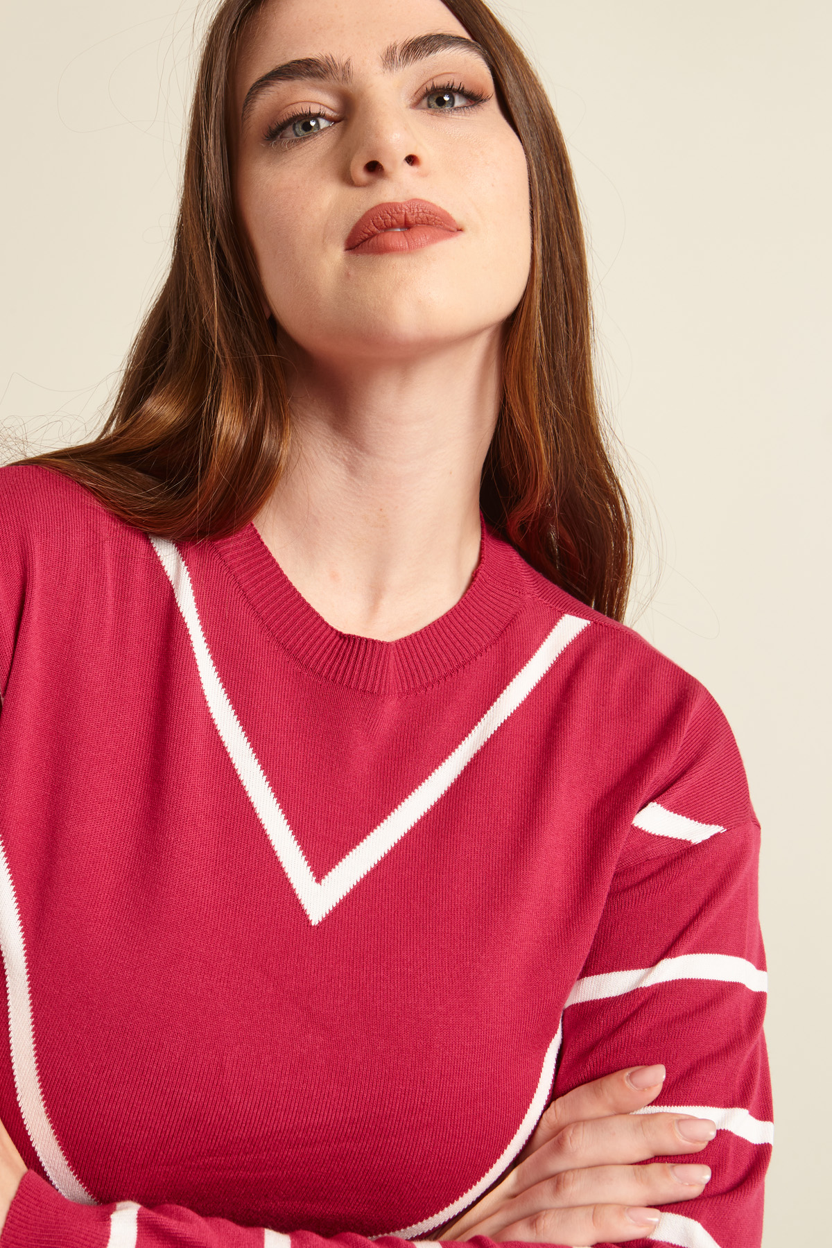 Maglia dalla linea morbida in viscosa stretch con girocollo, maniche lunghe dal giro sceso, spacchetti laterali al fondo. Collo e polsini rifiniti con lavorazione a coste.