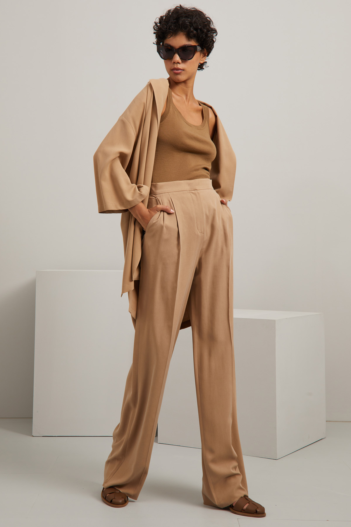 Top smanicato dalla linea aderente realizzato in maglia di pura lana con scollo a U, spalline spesse e profili rifiniti a coste.