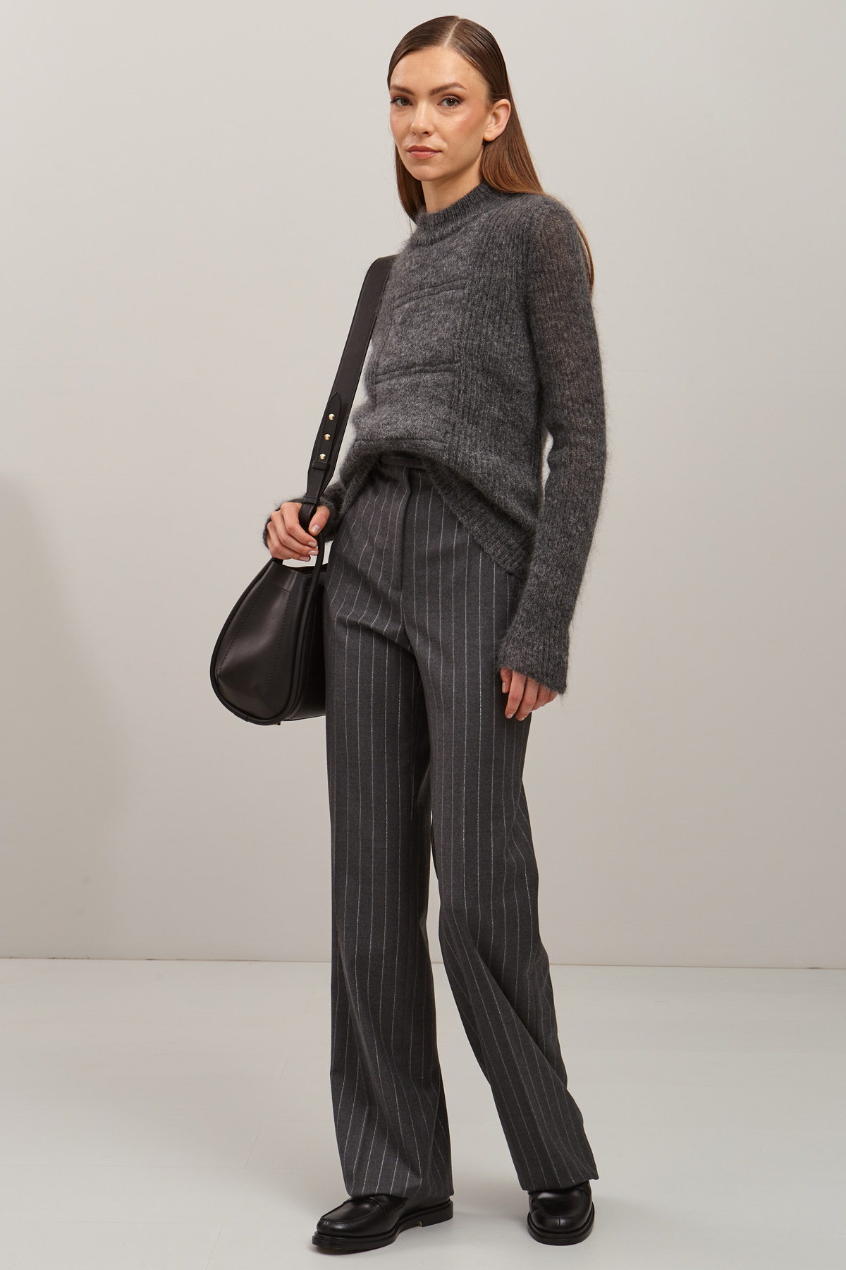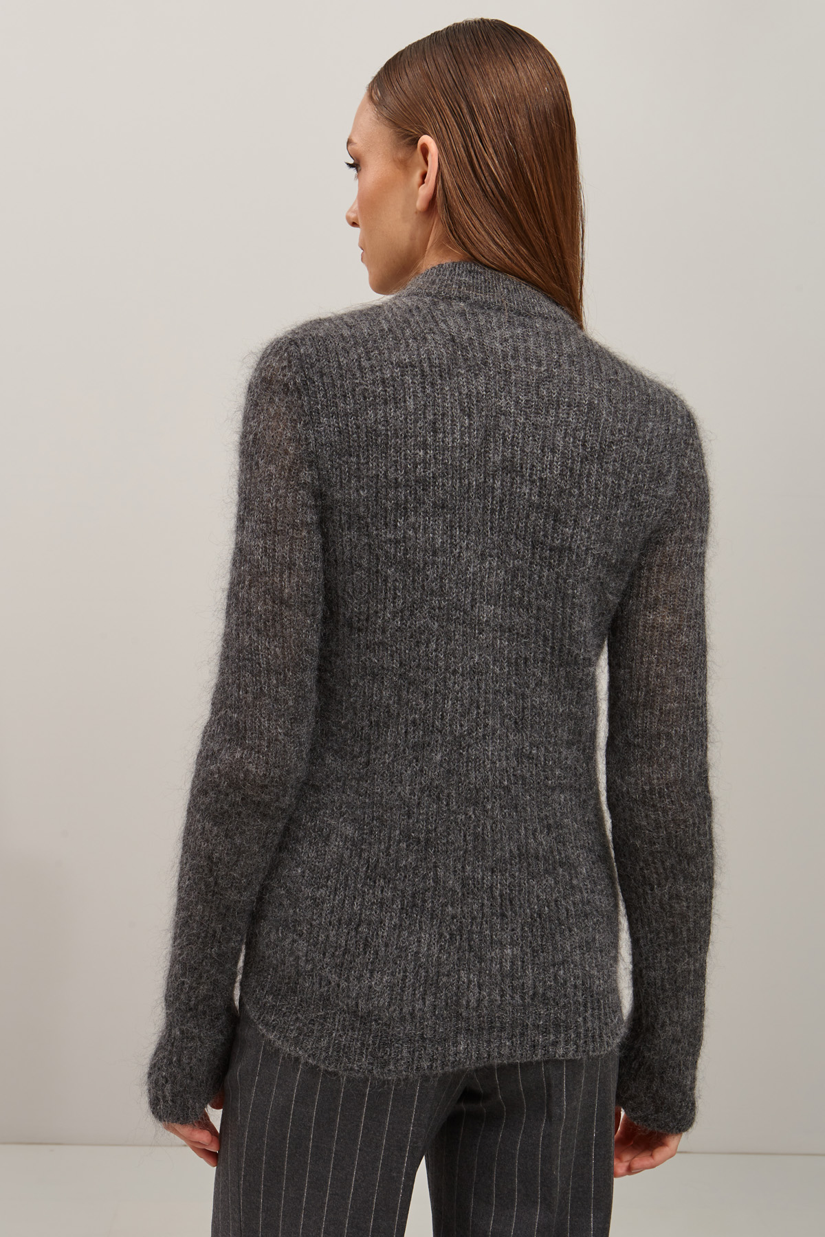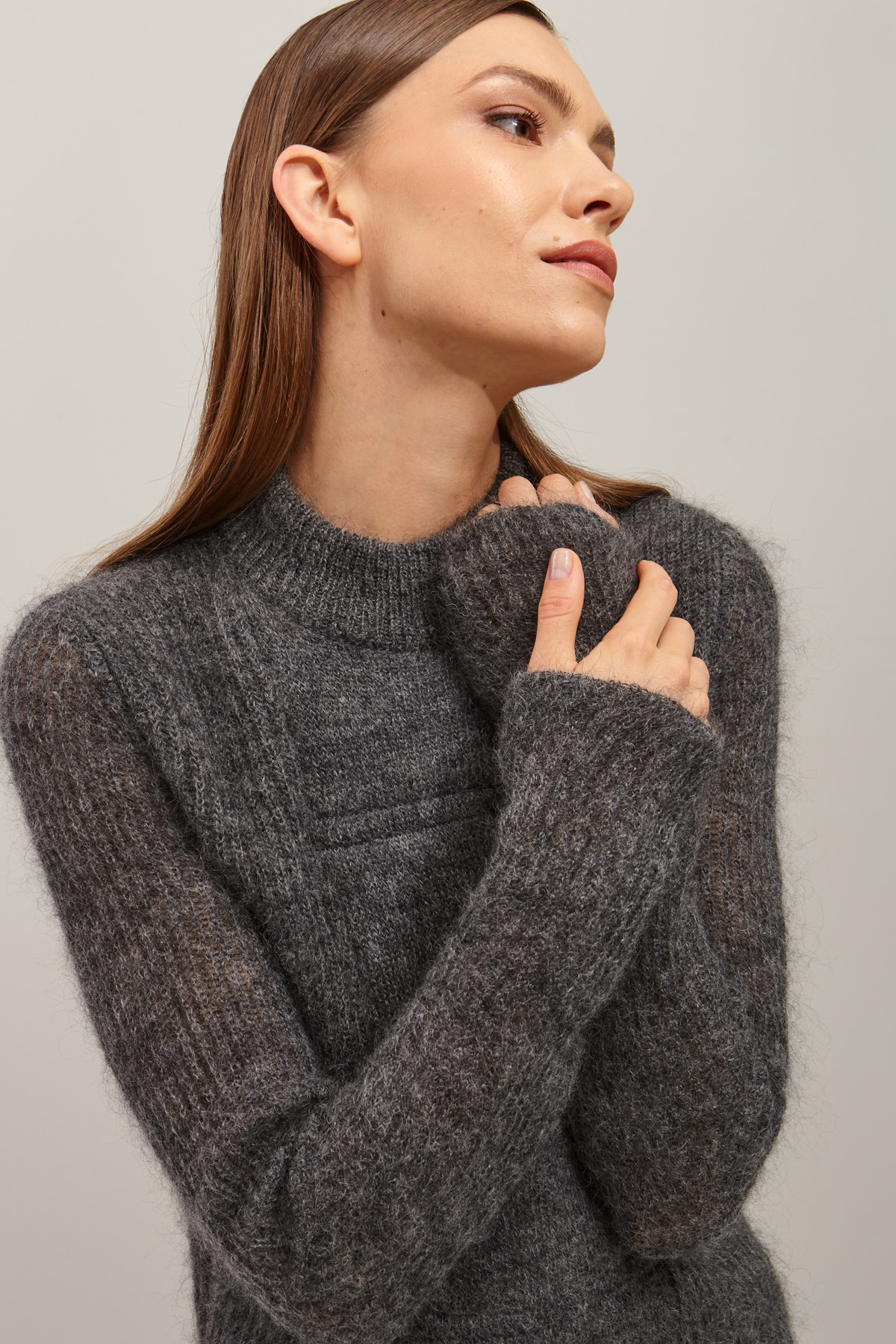 Maglia dalla linea dritta realizzata in filato di misto mohair e lana, con dettaglio imbottito sul davanti, collo montante e maniche lunghe.