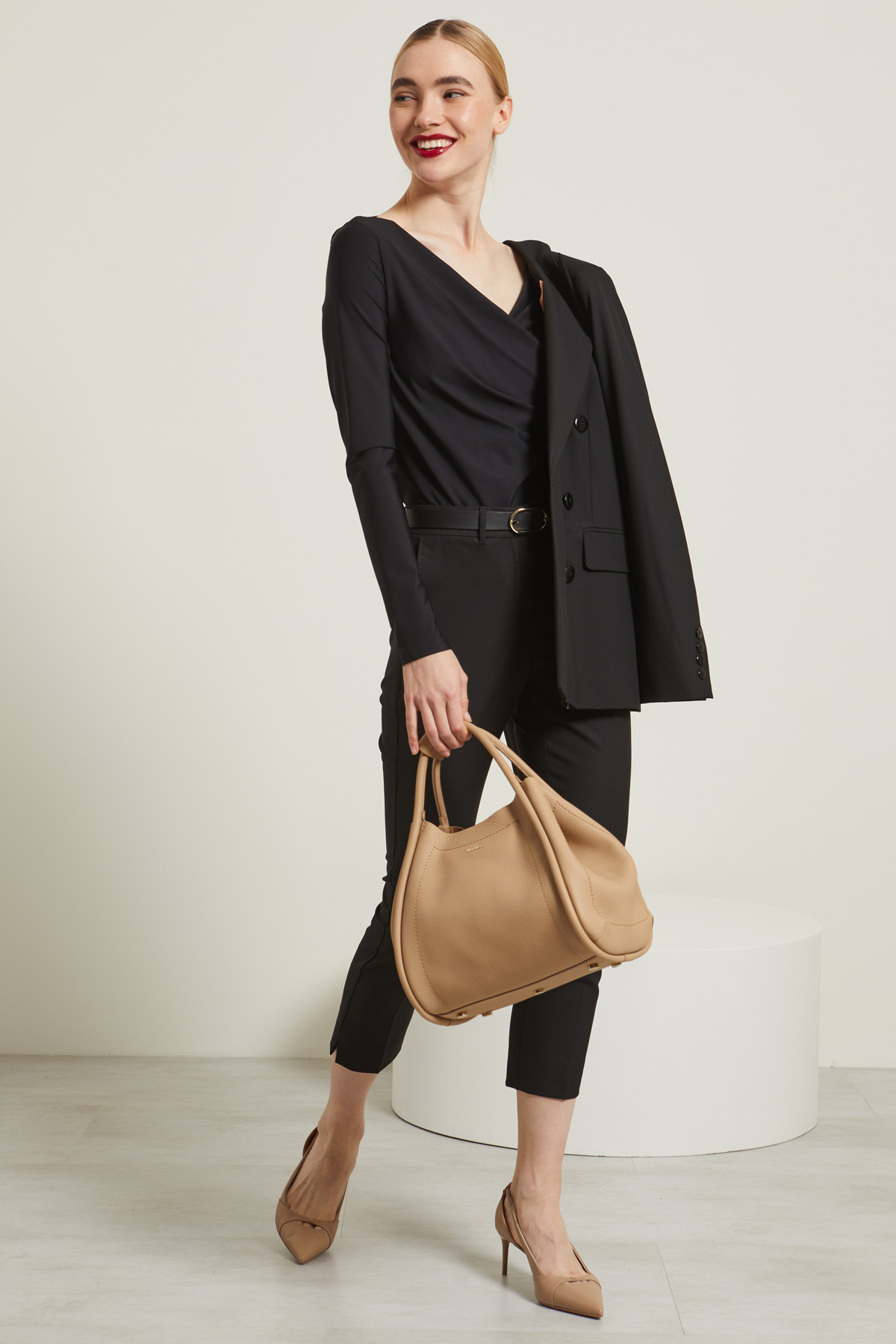 - La modella è alta 177 cm e indossa la taglia M. Le sue misure sono: seno 82 cm, vita 60 cm e fianchi 89 cm
