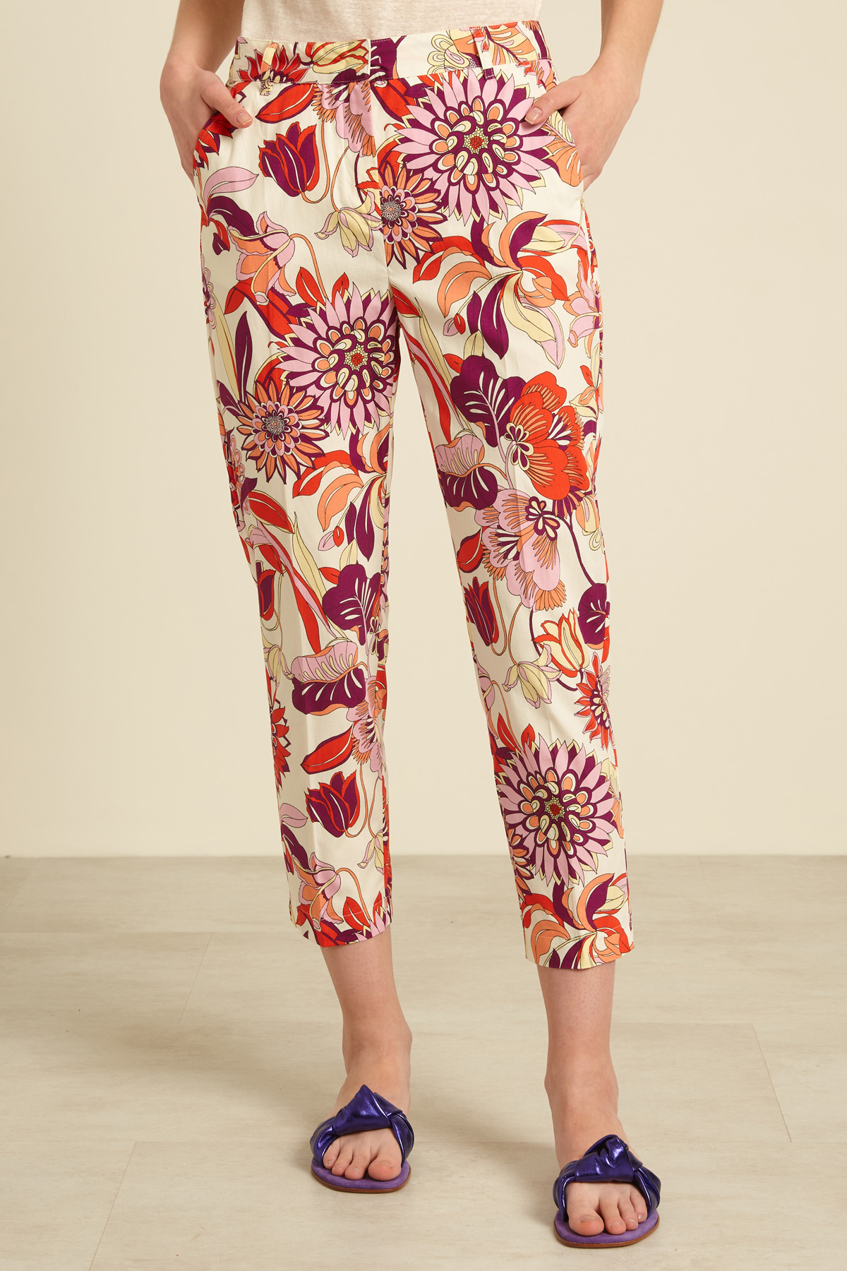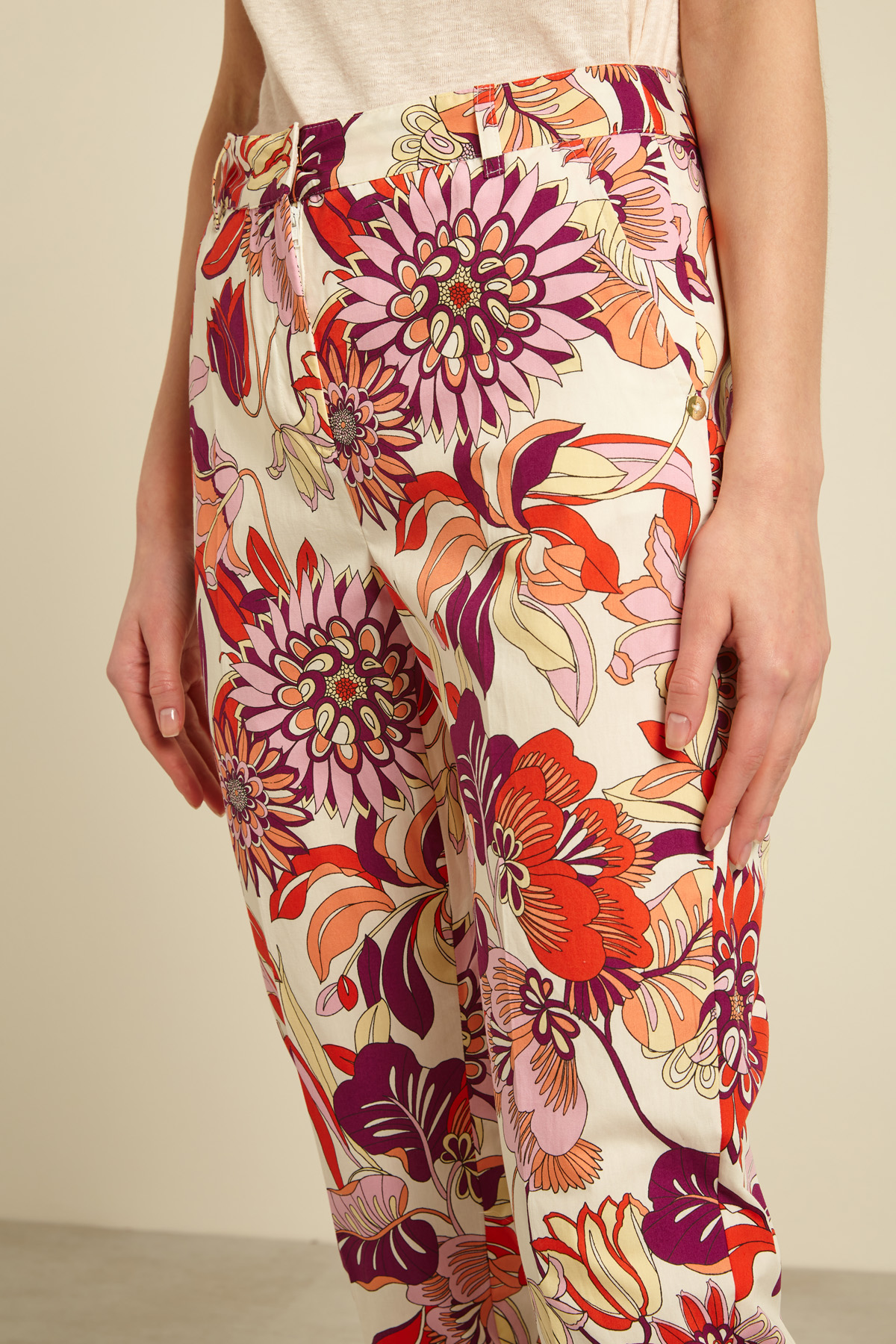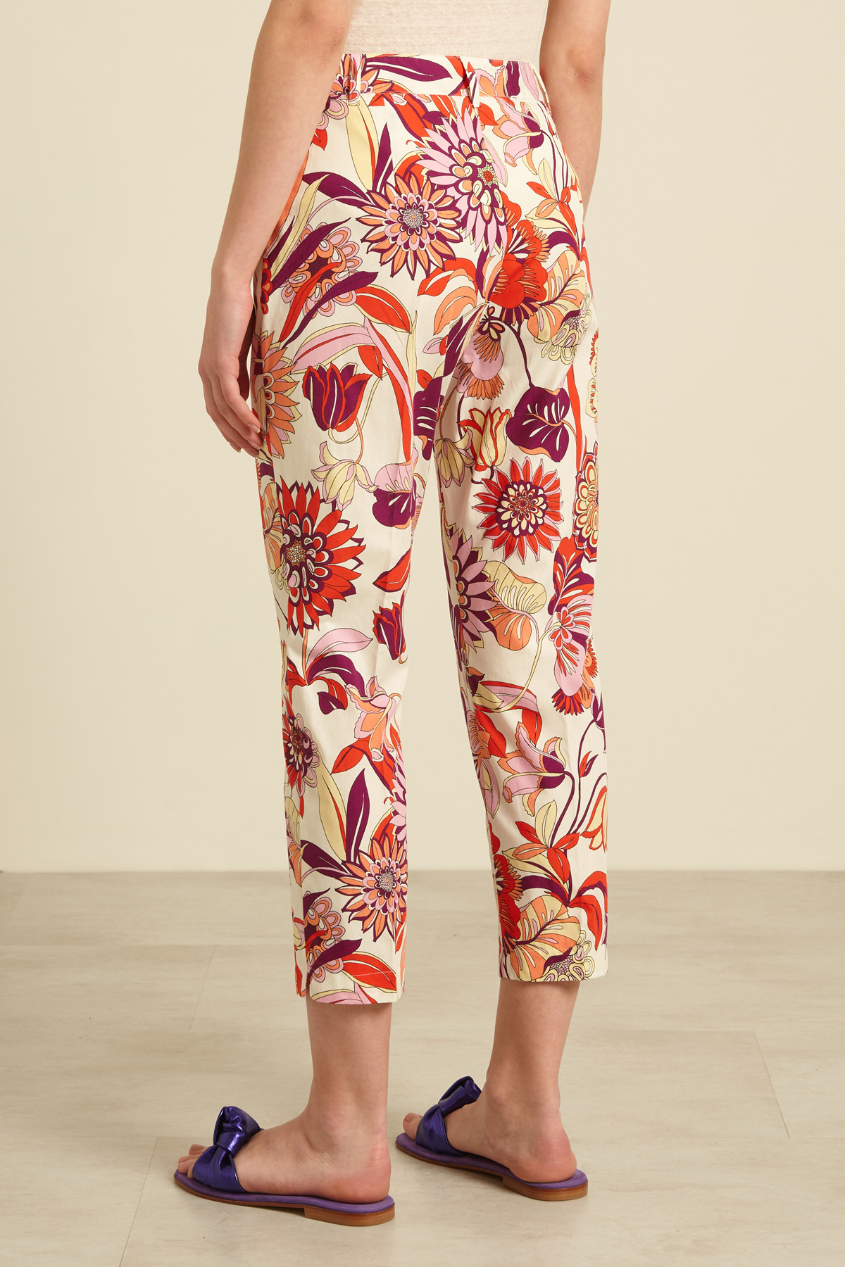 Pantaloni a sigaretta realizzati in popeline di puro cotone, con passanti in vita e tasche alla francese. Allacciatura nascosta tramite zip, bottone e gancio.