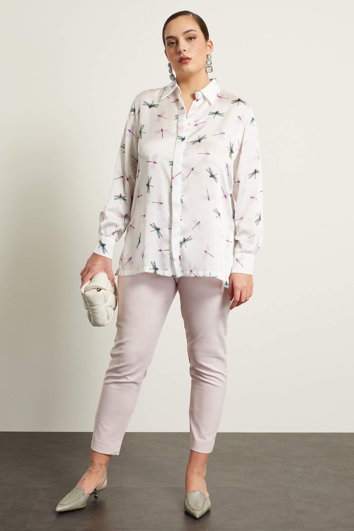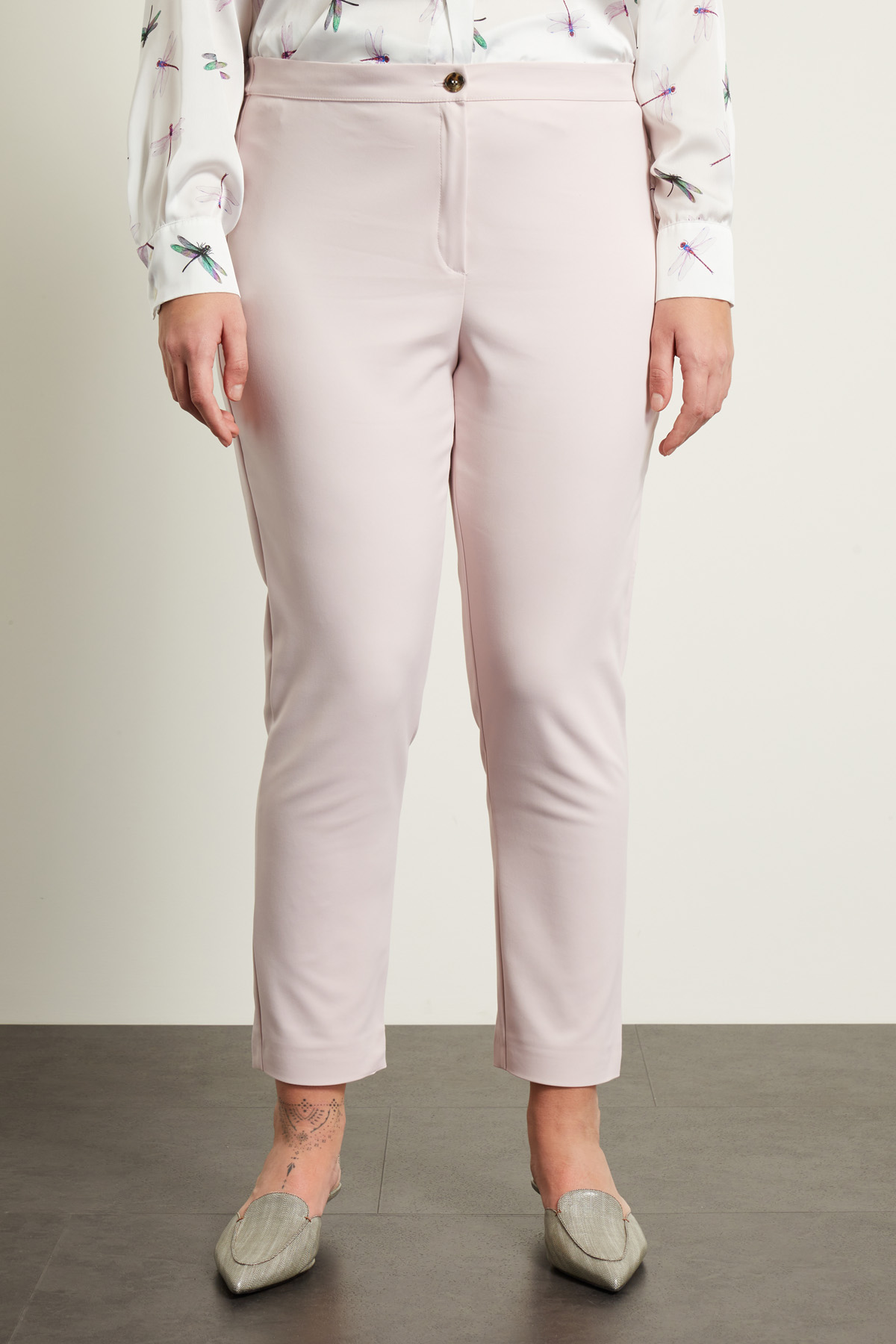 Pantaloni slim realizzati in misto cotone stretch, con inserto elastico in vita e allacciatura tramite zip e bottone.