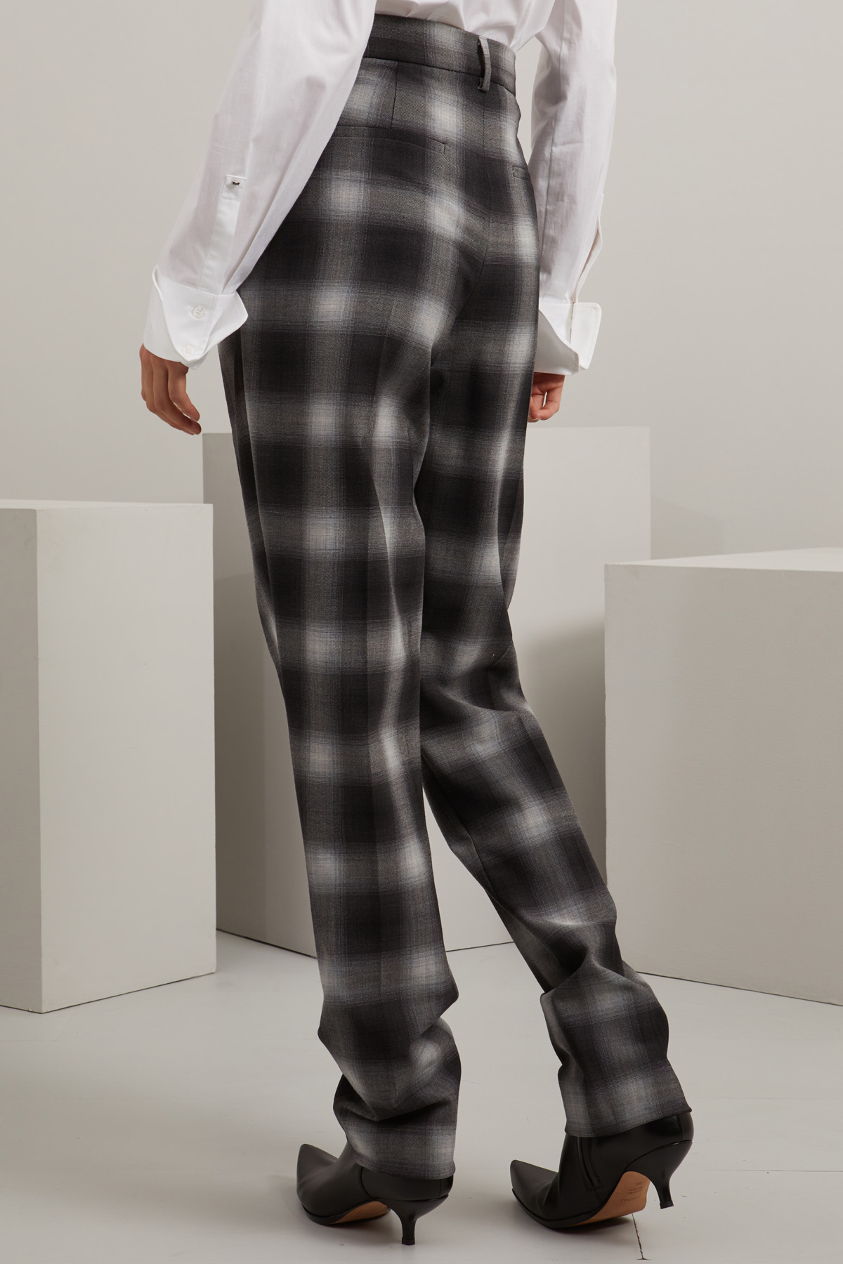 Pantaloni carrot realizzati in batavia di misto lana stretch tinto filo, con passanti e pieghe cucite in vita, tasche alla francese sul davanti e a filetto dietro. Allacciatura nascosta tramite zip, bottone e gancio.