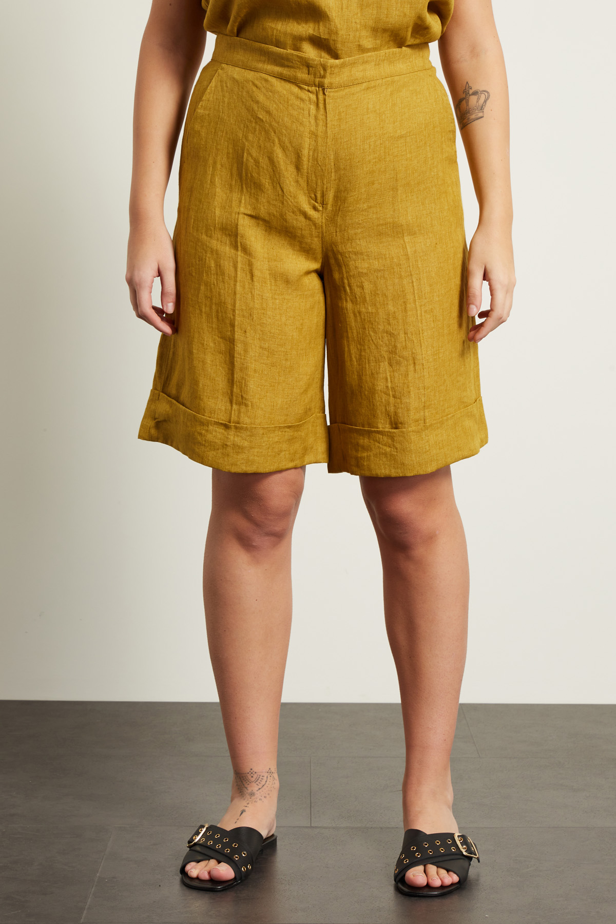 Bermuda in lino con risvolto