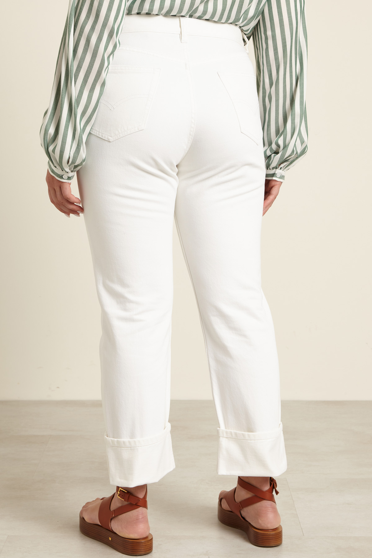 Jeans dalla linea dritta realizzati in denim di puro cotone, con passanti in vita, cinque tasche, orlo con risvolto e allacciatura tramite zip nascosta e bottone metallico.