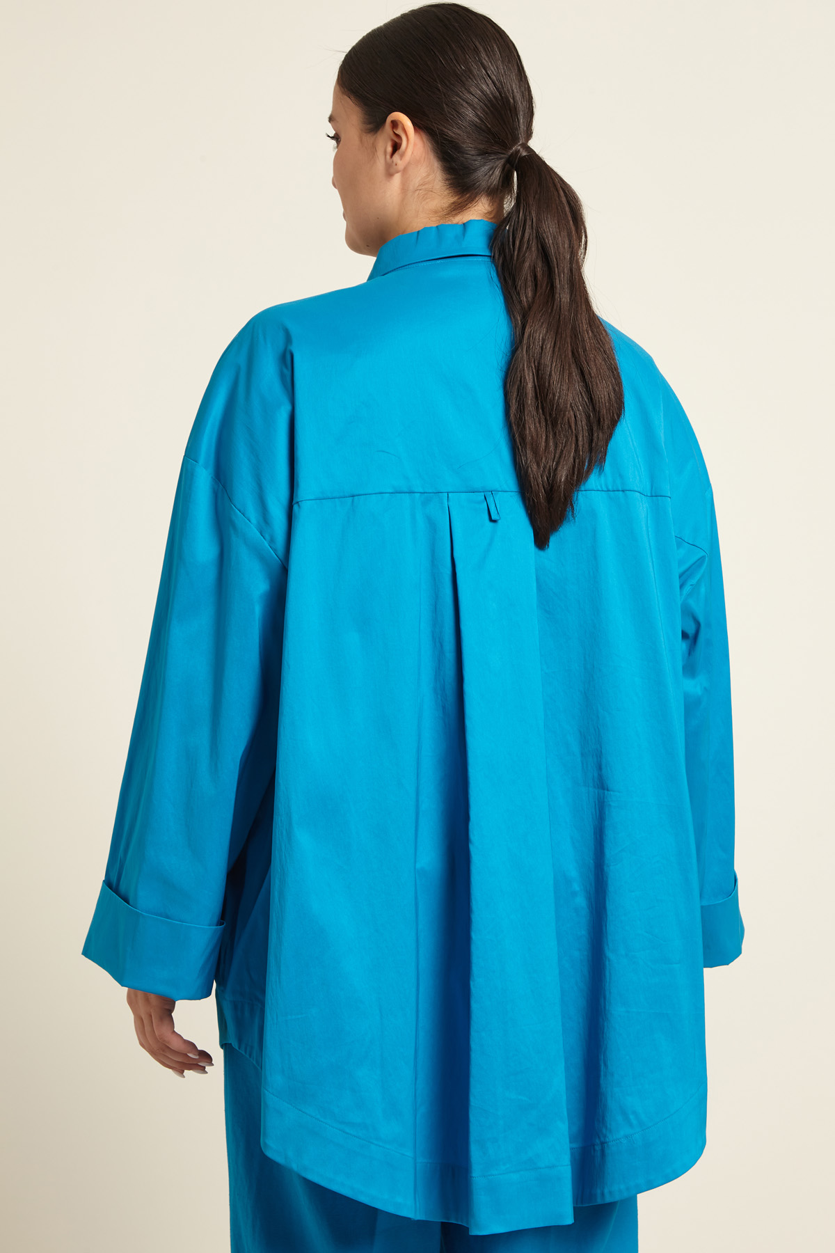 Camicia dalla line morbida realizzata in raso di misto cotone, con colletto classico, maniche lunghe dal giro sceso e polsino con risvolto, taschino applicto su petto, carrè e cannoncino nel retro. Allacciatura tramite bottoni.