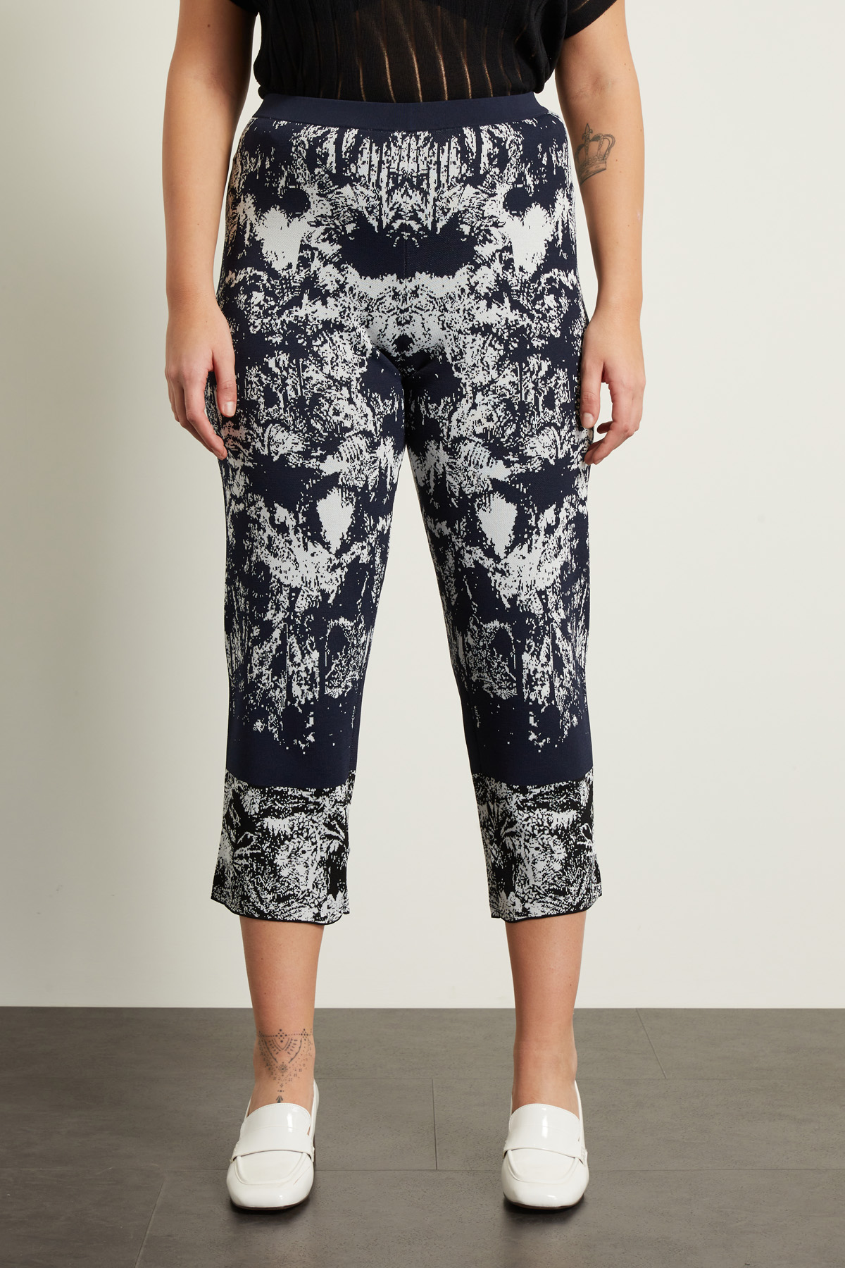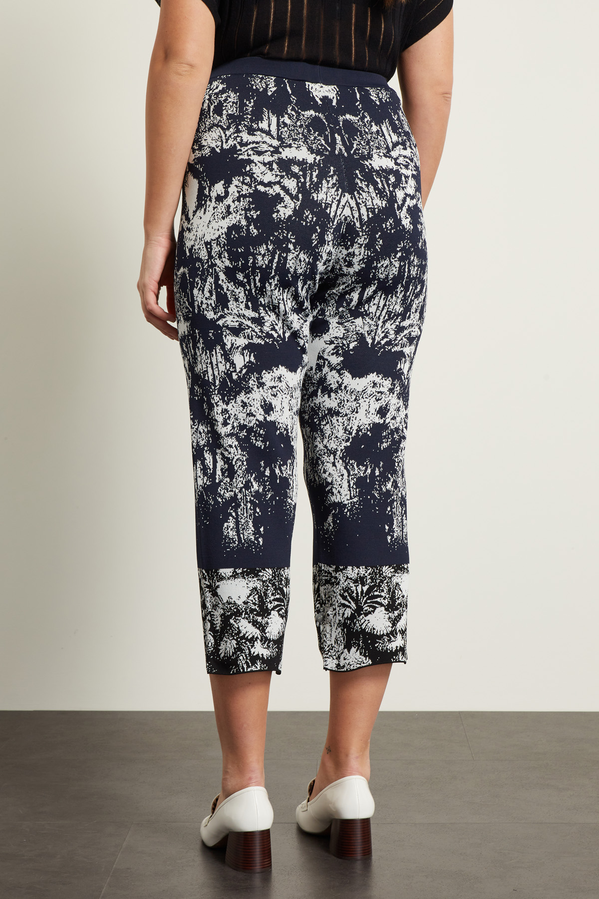 Pantaloni dalla linea dritta realizzati in maglia di viscosa tinto filo con inserto elastico in vita.