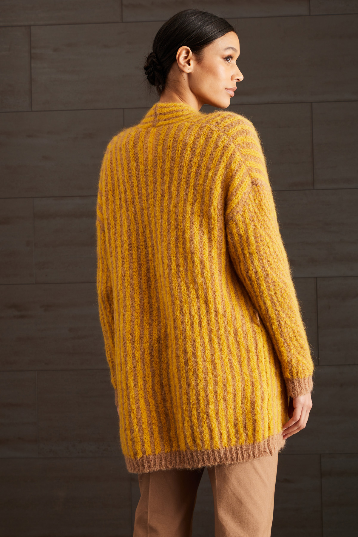 Cardigan lungo dalla linea dritta realizzato in filato di misto alpaca e mohair tinto filo, con maniche lunghe e profili rifiniti a coste.