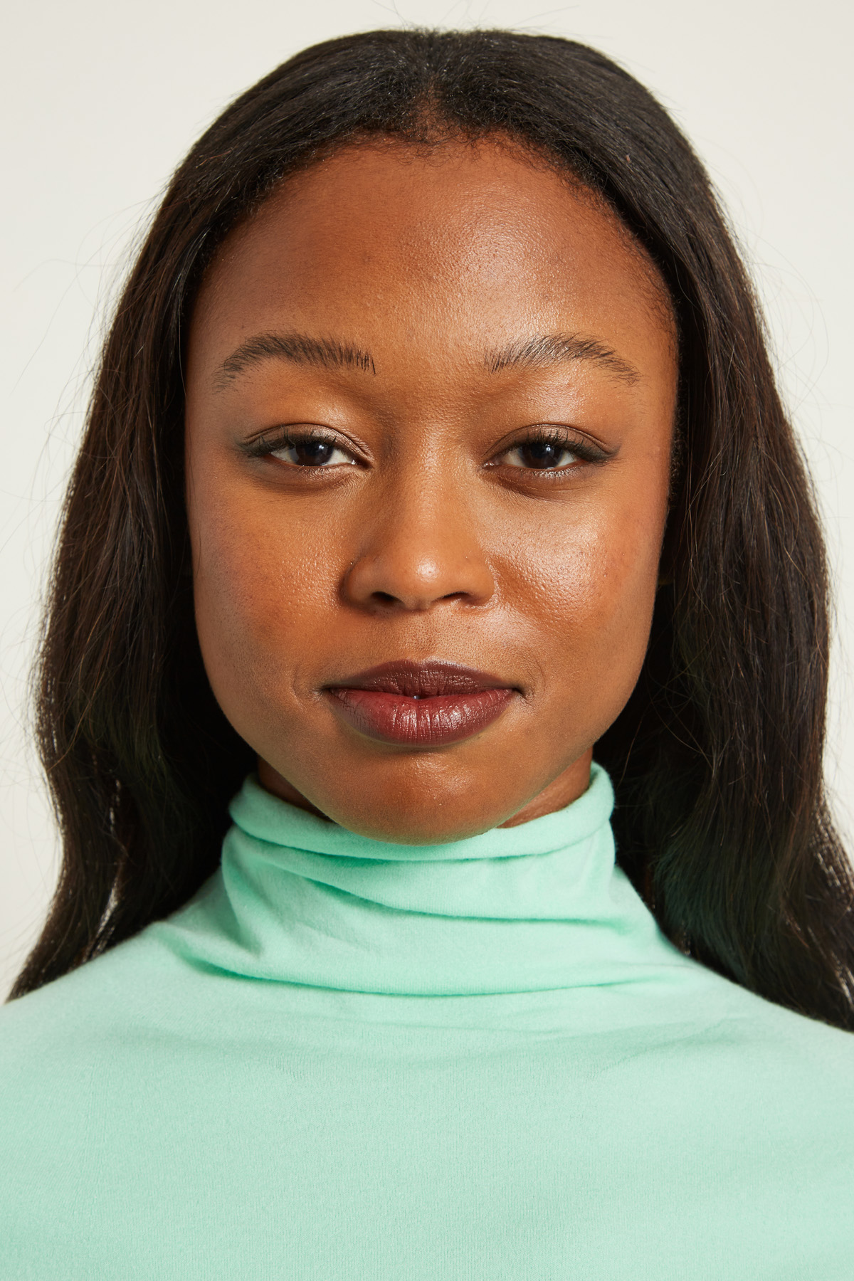 Dolcevita dalla linea aderente realizzato in jersey di fibra naturale, con collo alto e maniche tre quarti, profili tagliati a vivo.