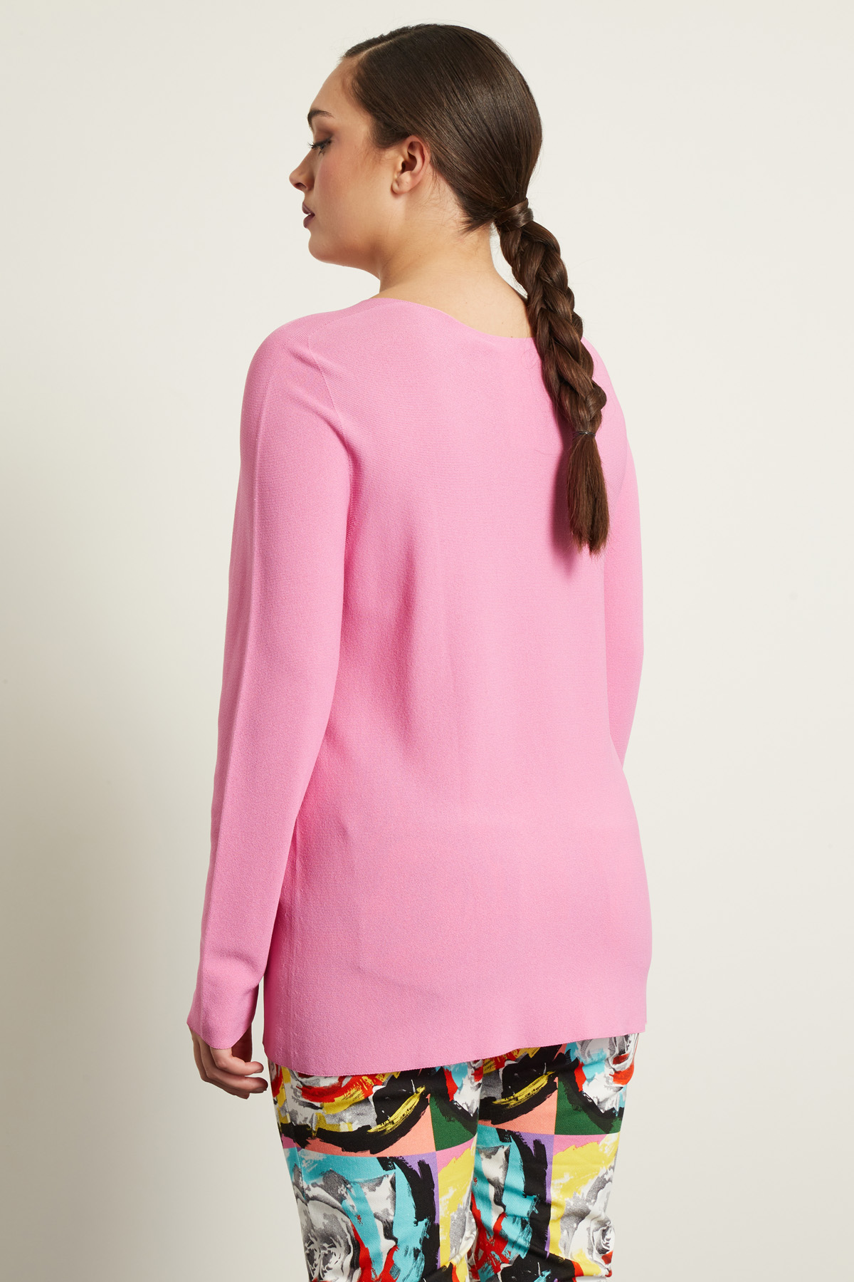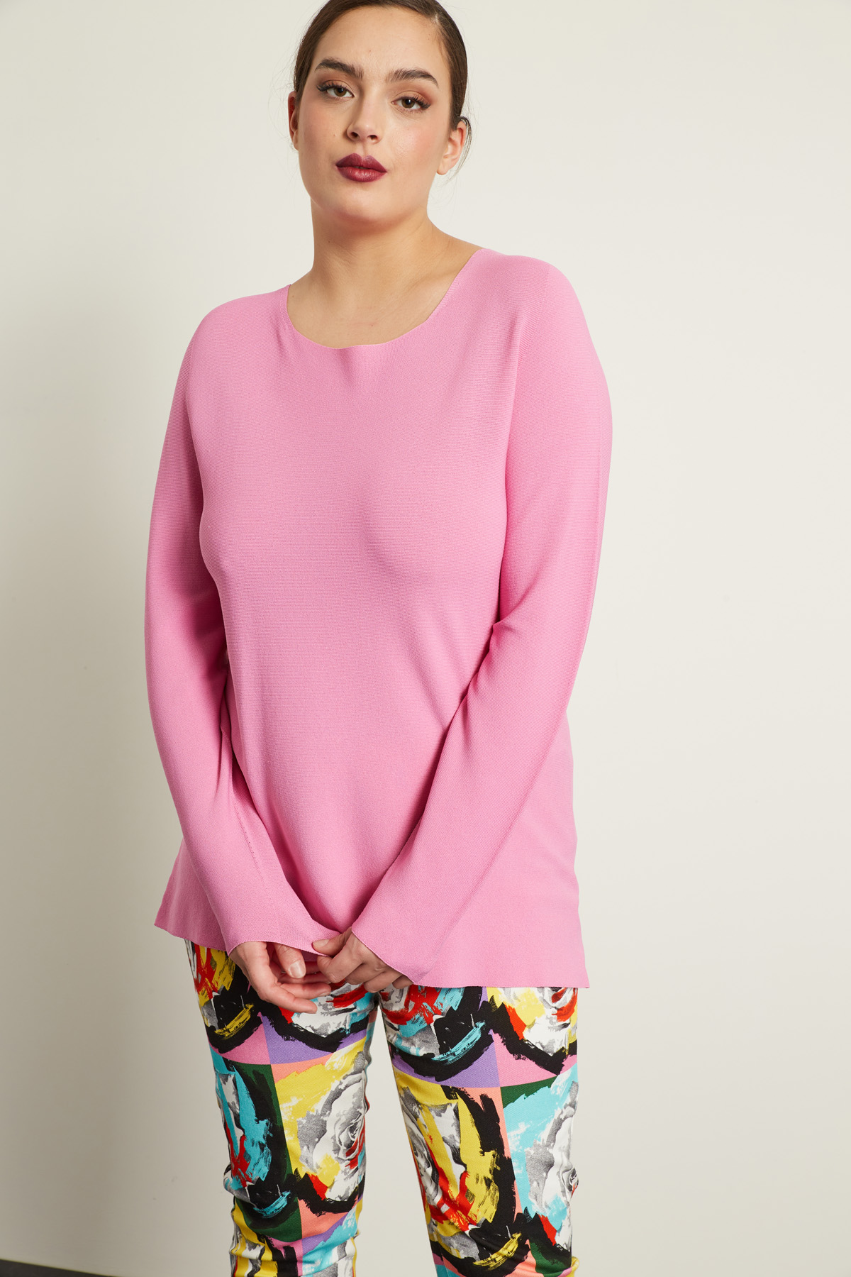 Maglia dalla linea dritta realizzata in filato di misto viscosa, con scollo a giro e maniche lunghe.
