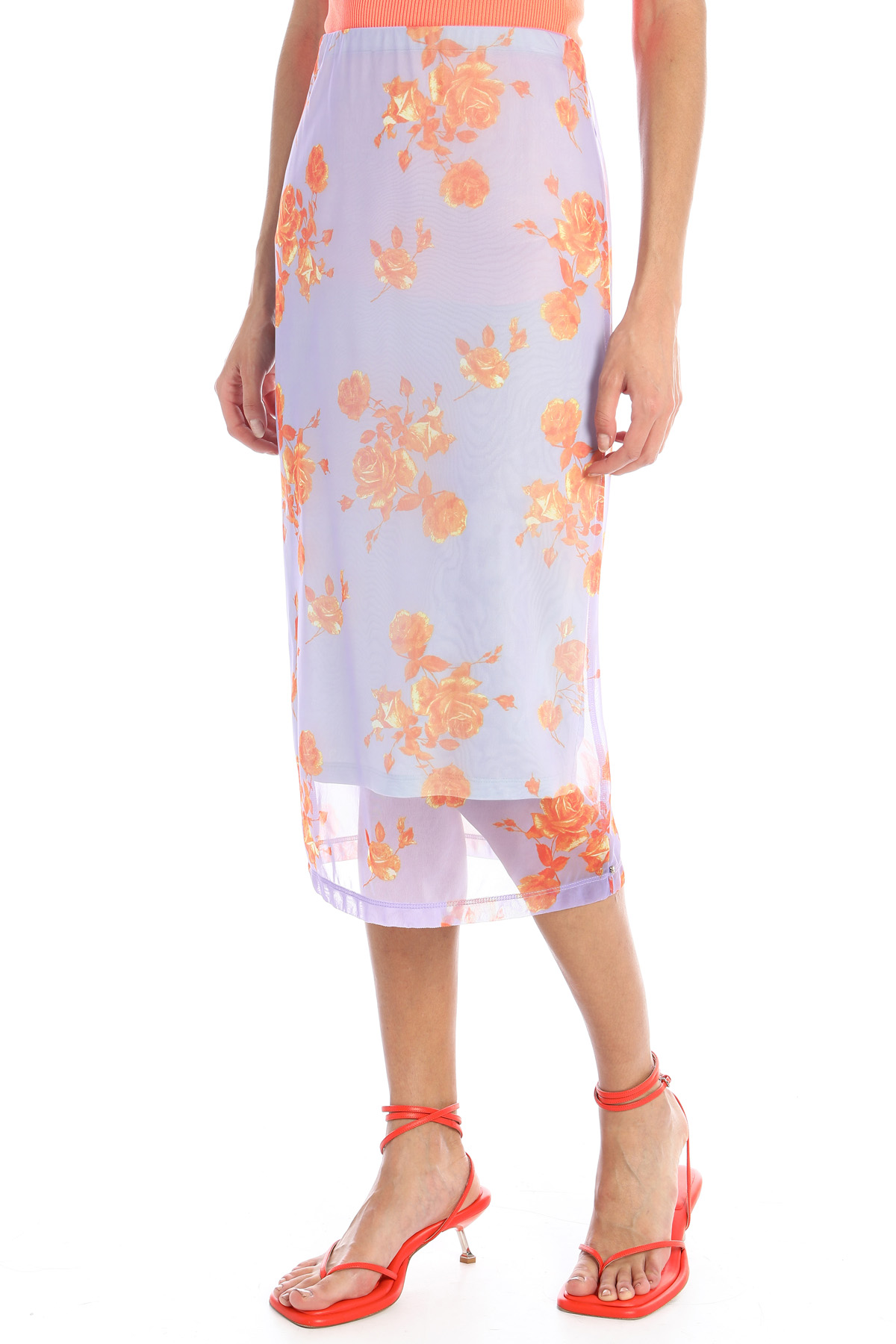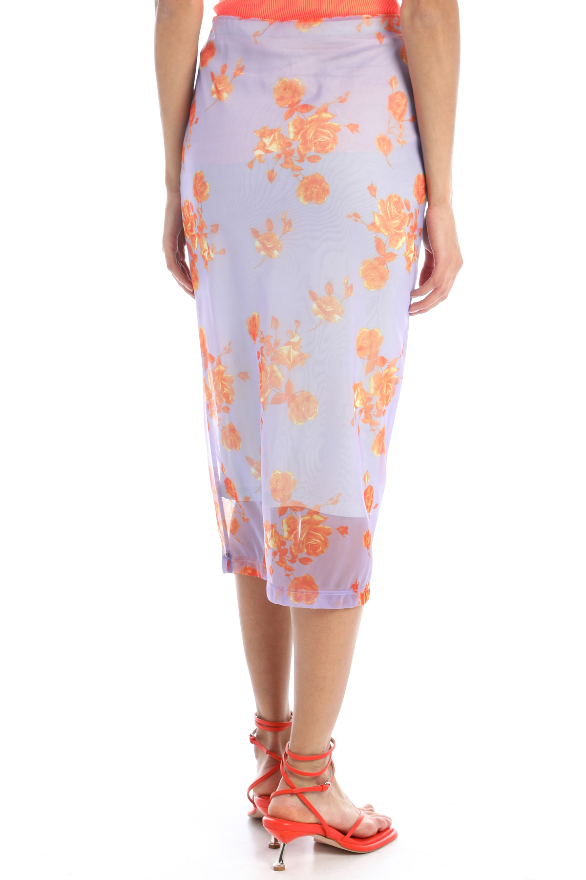 Gonna a tubino realizzato in jersey con stampa floreale e fodera in viscosa stretch. Inserto elastico in vita.