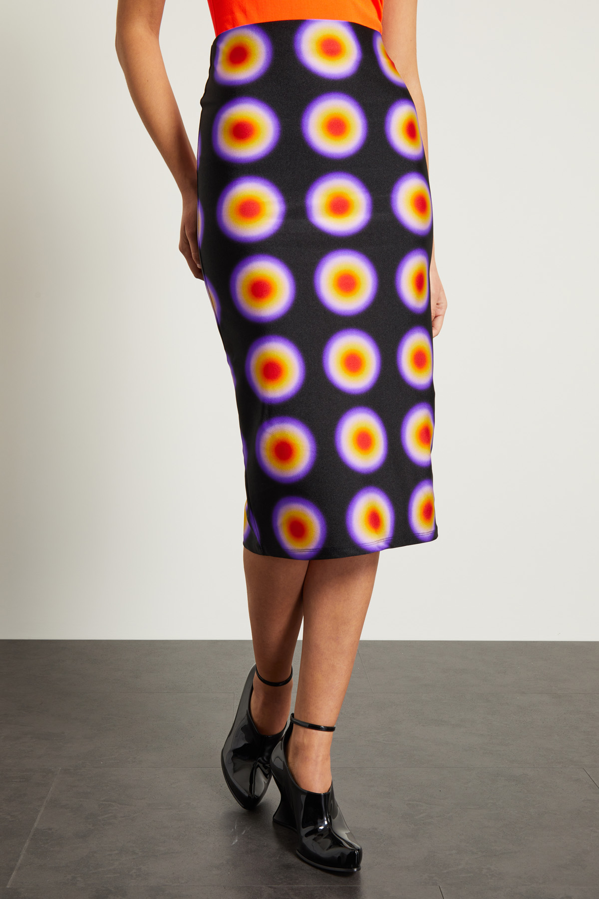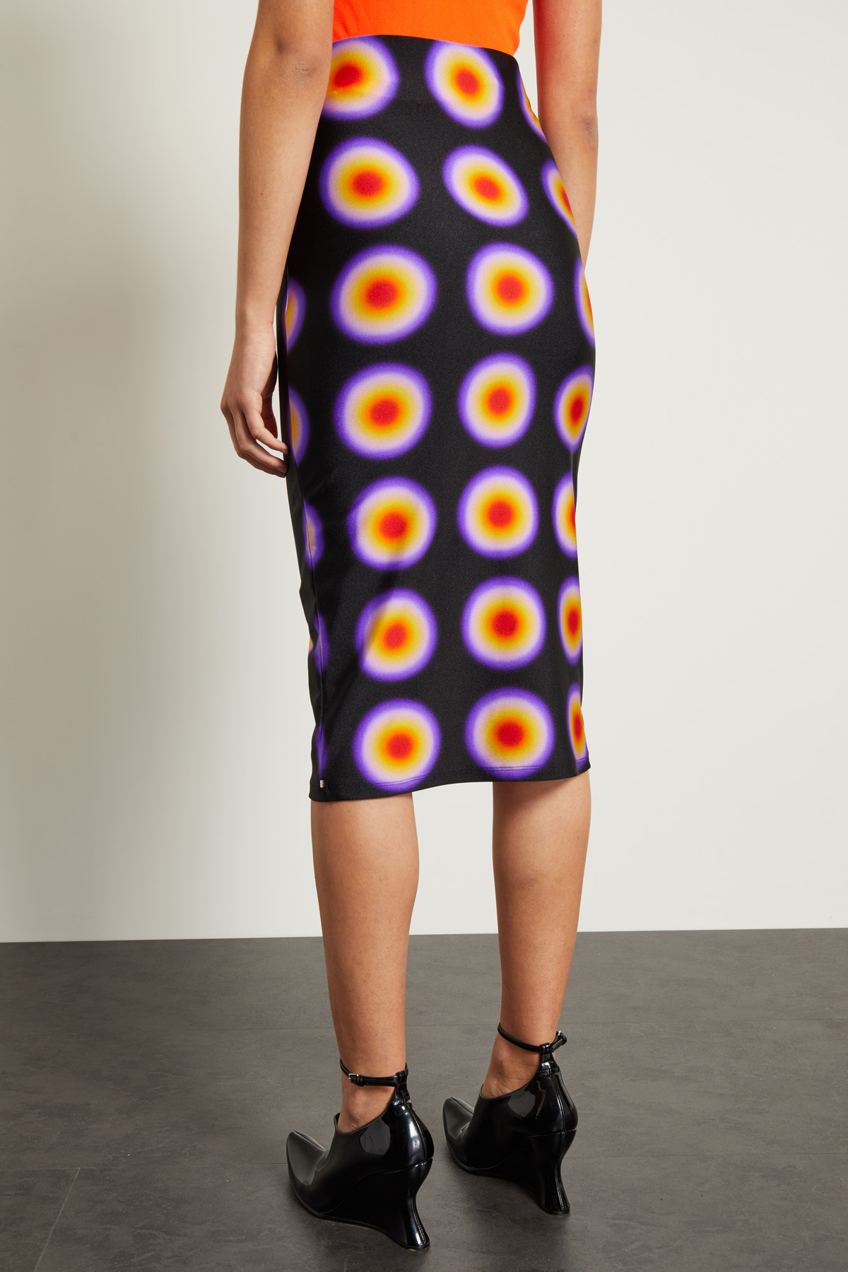 Gonna a tubo dalla linea aderente realizzata in jersey tecnico stretch stampato, con inserto elastico in vita.