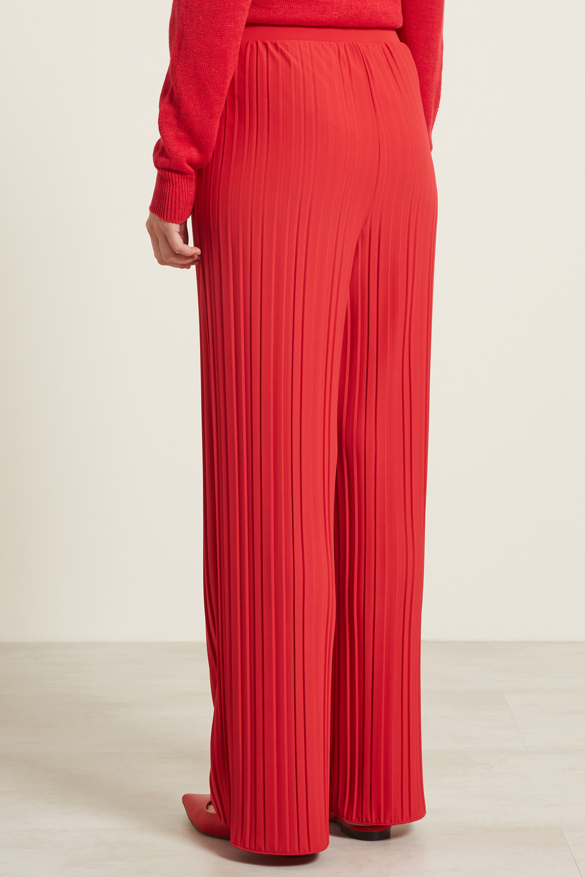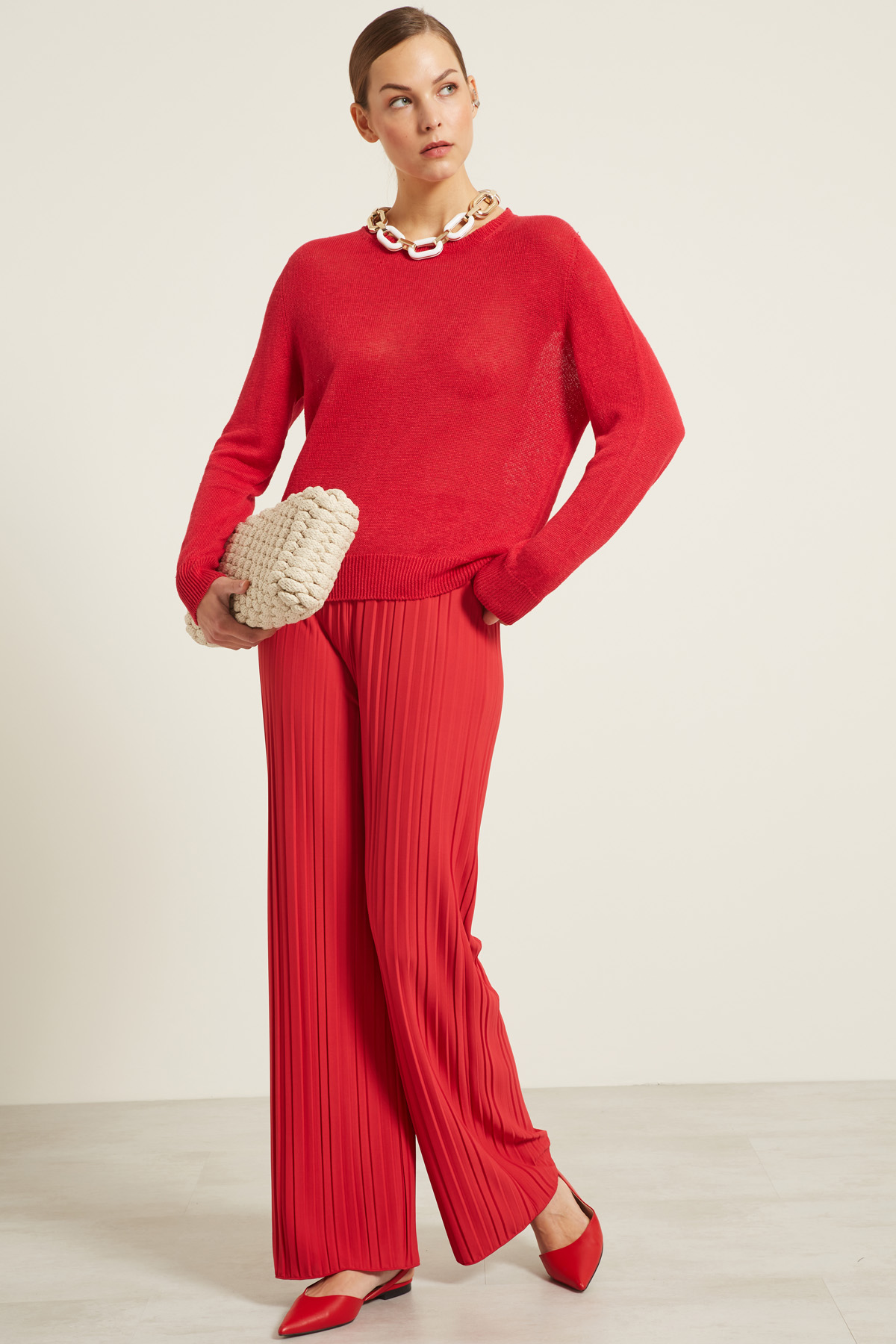 Pantaloni a palazzo realizzati in jersey con lavorazione plissè. Inserto elastico in vita.