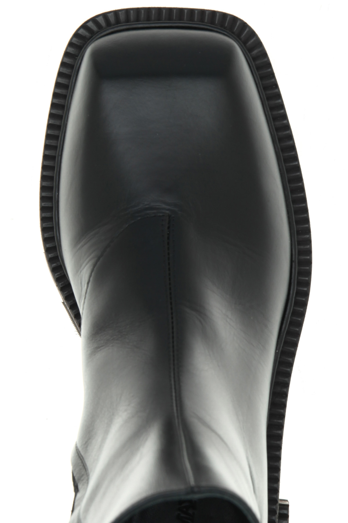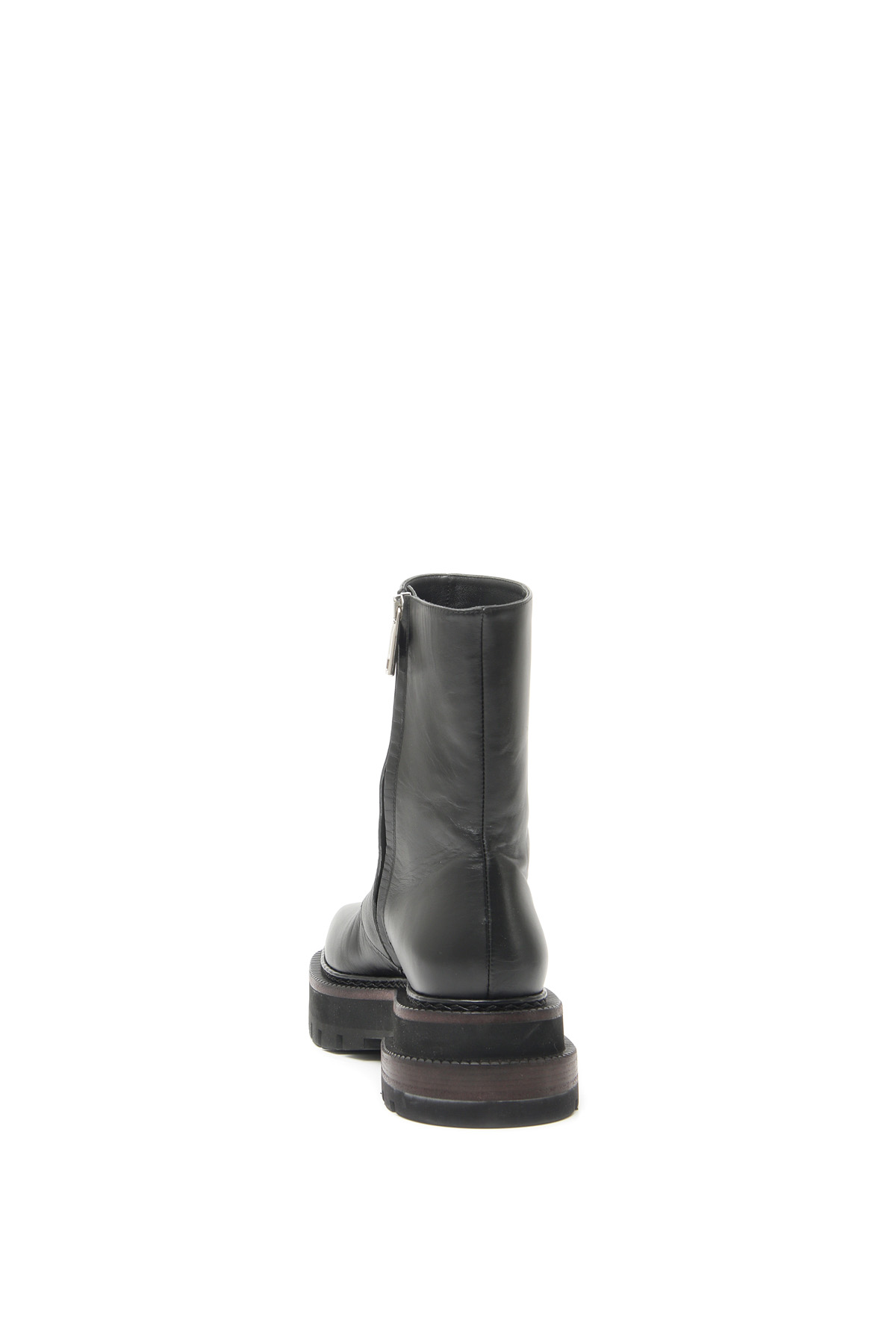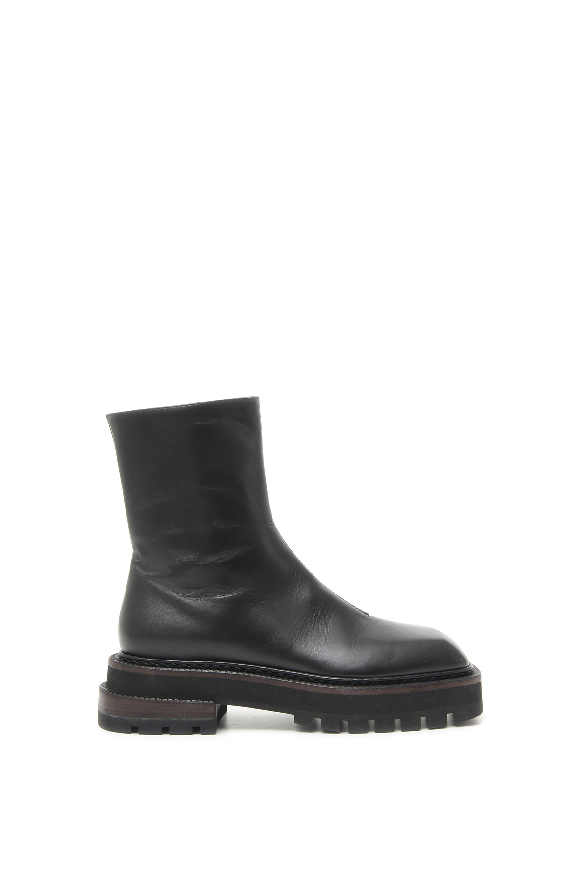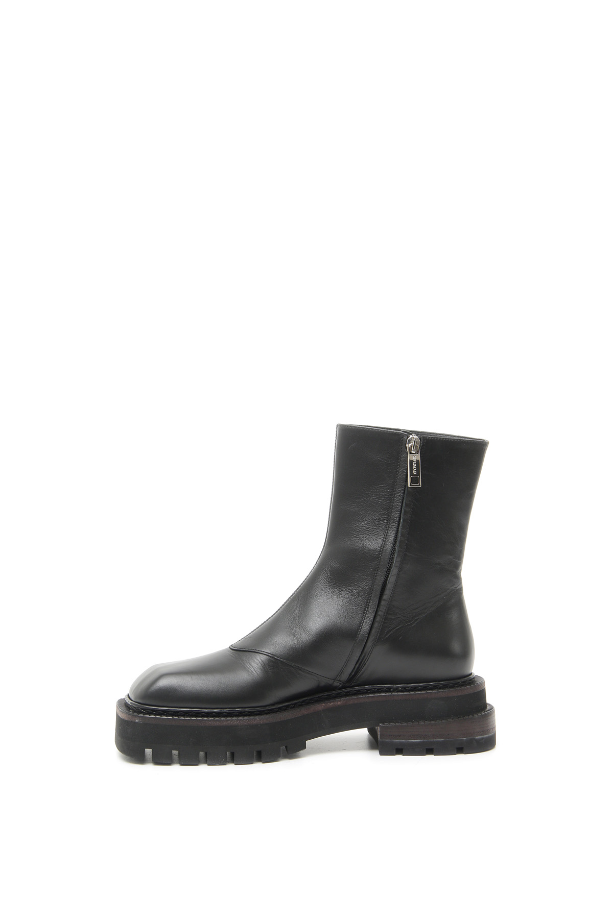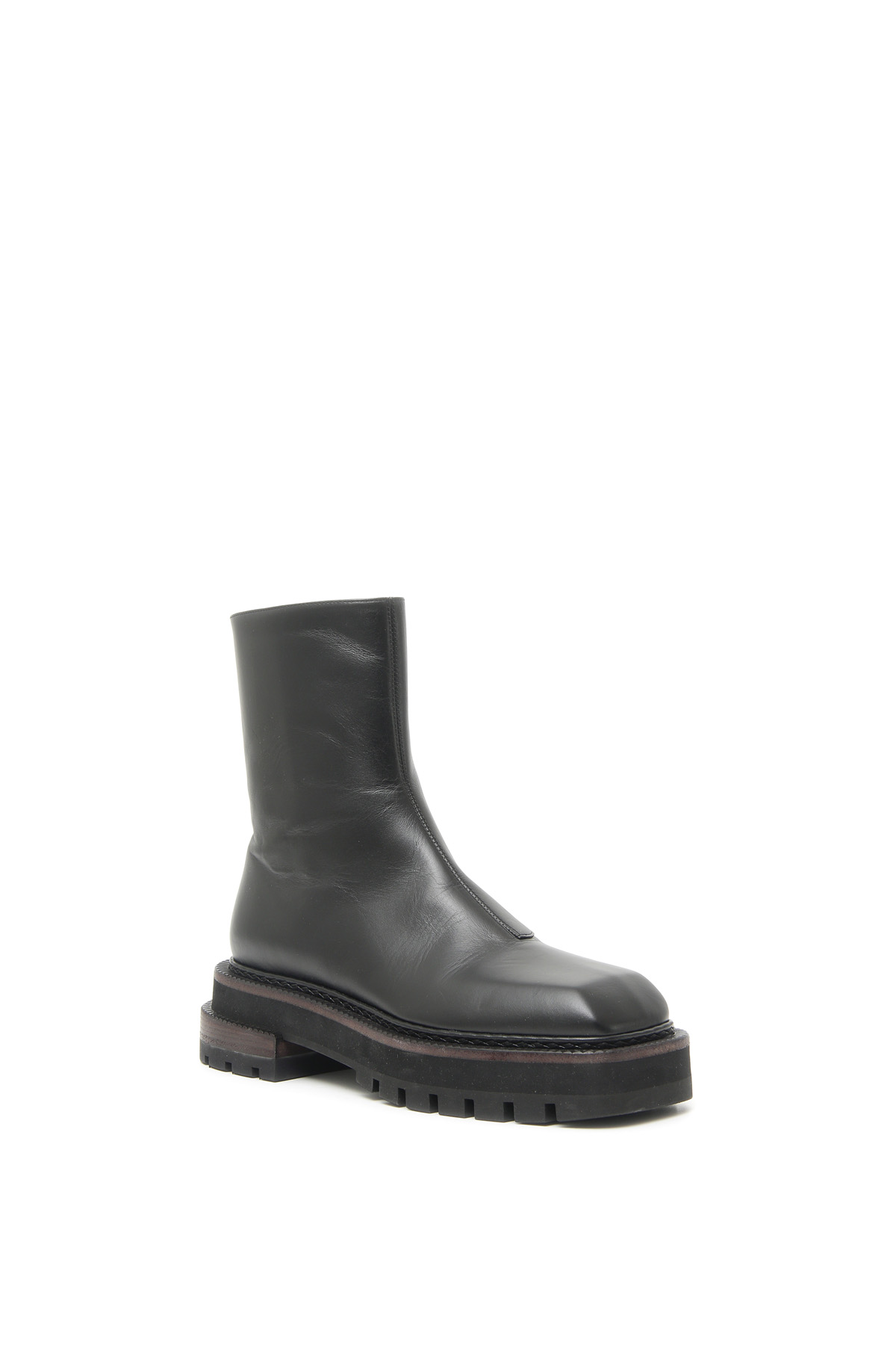 Stivaletti alla caviglia realizzati in vera pelle, con punta squadrata, guardolo sporgente con motivo zigrinato e chiusura con zip sul lato interno. Fodera in pelle, suola trekking in gomma.