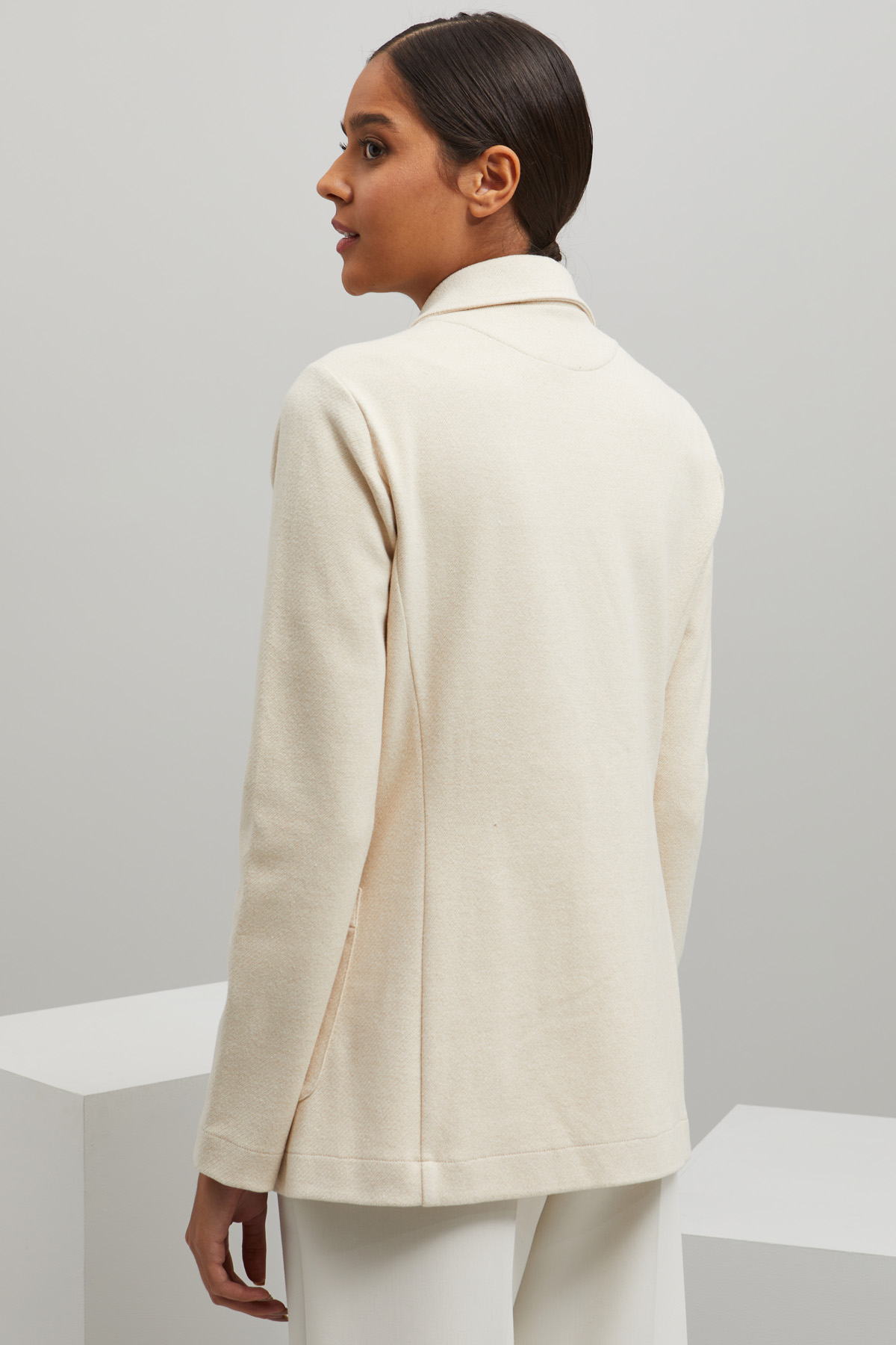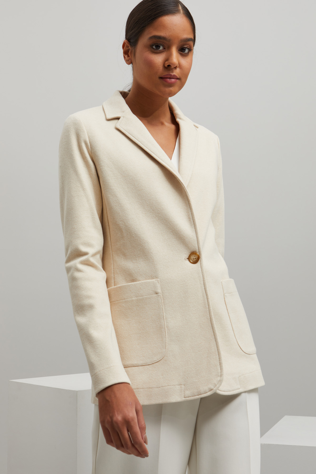 Blazer dalla linea dritta realizzato in jersey di misto viscosa stretch jacquard, con collo a rever, maniche lunghe, tasche applicate e allacciatura monopetto tramite bottone. Sfoderato.