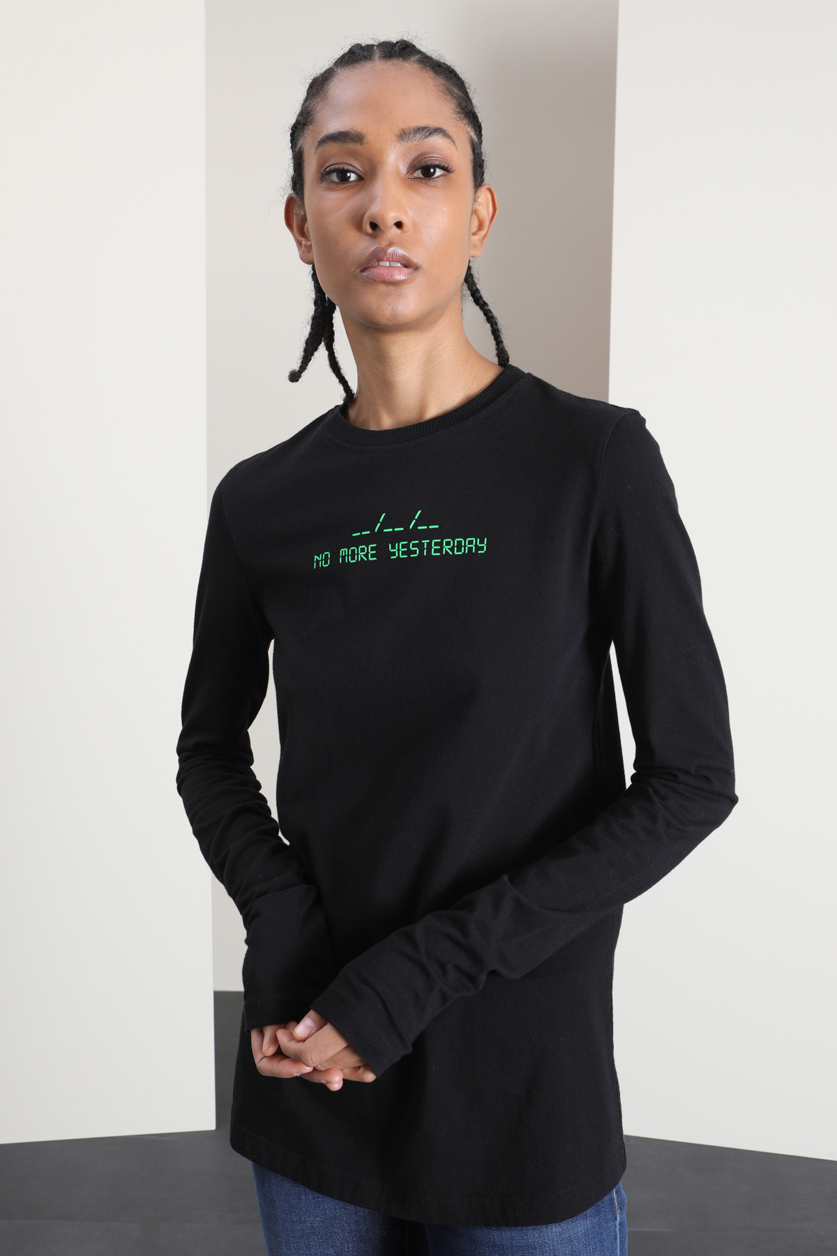 T-shirt dalla linea dritta realizzata in jersey di puro cotone, con stampa sul davanti, scollo a giro rifinito a coste e maniche lunghe.