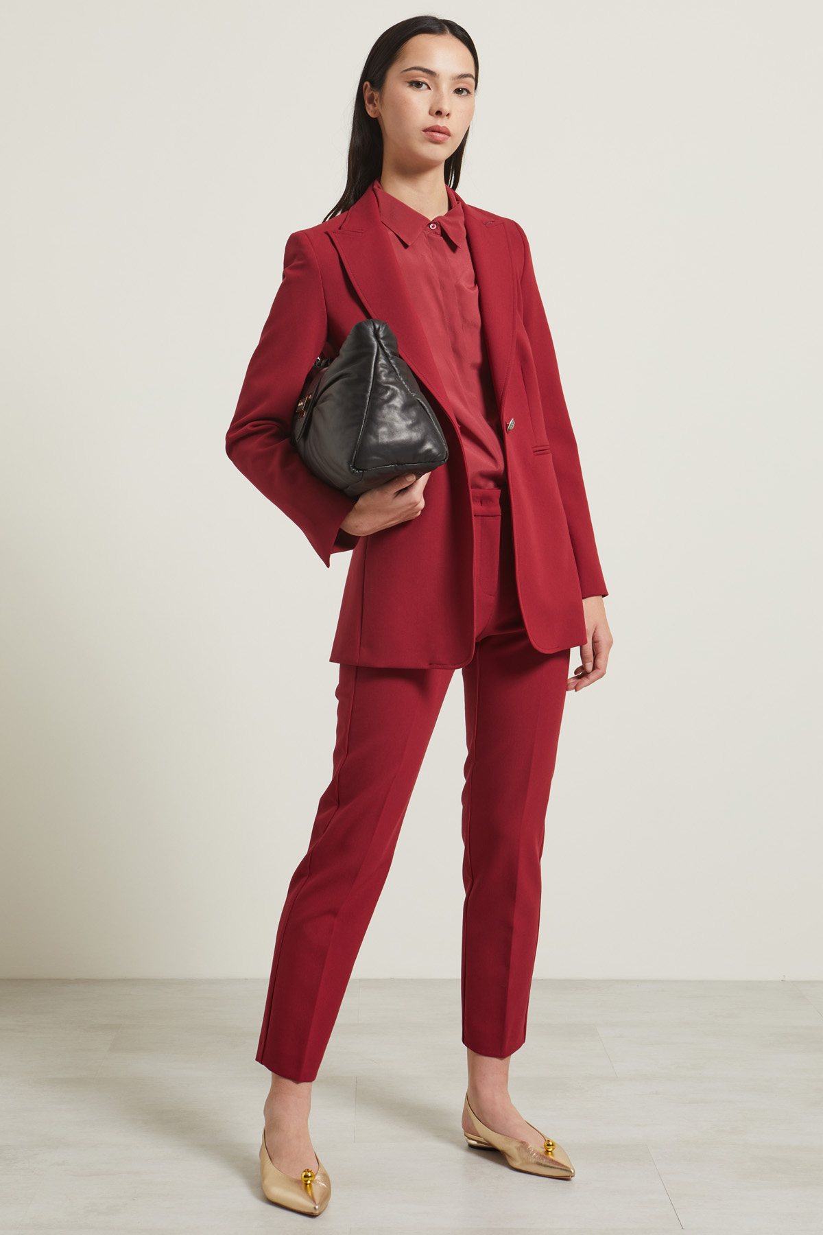 - Tessuto 71% poliestere, 22% viscosa, 7% elastan; fodera 100% poliestere.