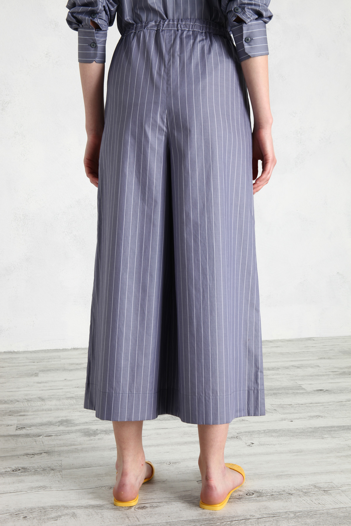Pantaloni cropped dalla linea ampia realizzati in popeline di cotone gessato, con cintone elastico in vita e tasche alla francese.