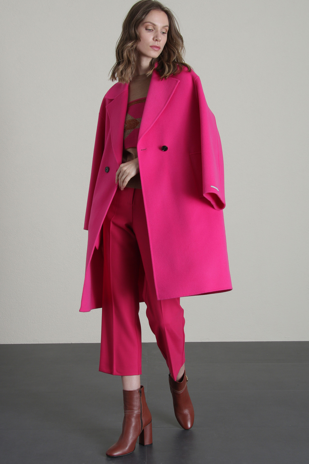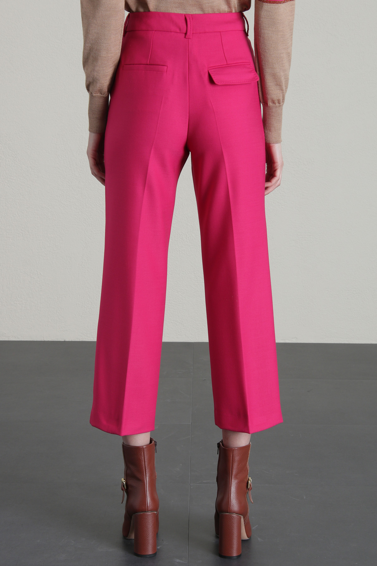 Pantaloni dalla linea dritta realizzati in tessuto di misto lana stretch, con passanti in vita, tasche laterali alla francese e a doppio filetto con patta sul retro, rifinitura a puntino e allacciatura nascosta tramite zip, bottone e gancio.