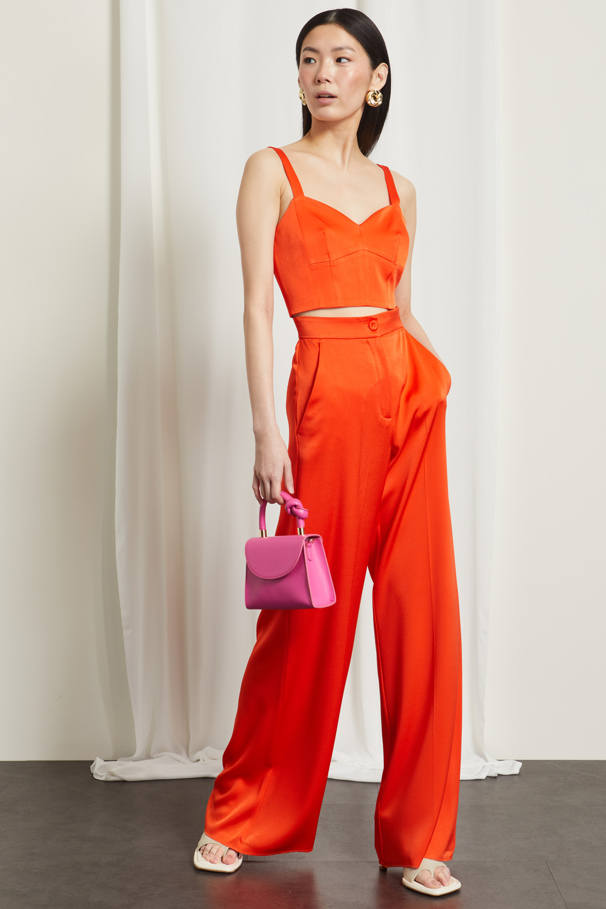 Crop top dalla linea aderente realizzato in satin con scollo a cuore e spallini sottili. Chiusura con zip sul retro.