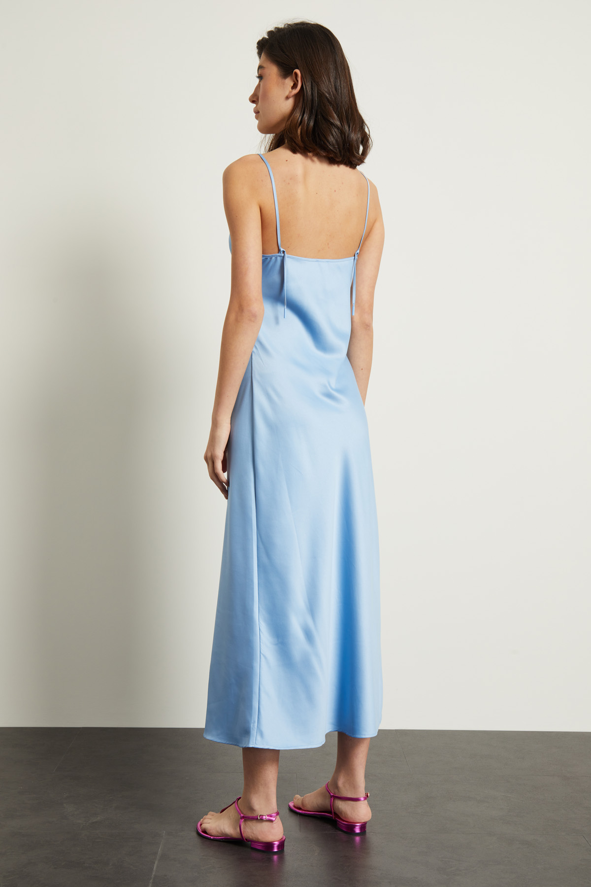 Abito lungo in raso fluido