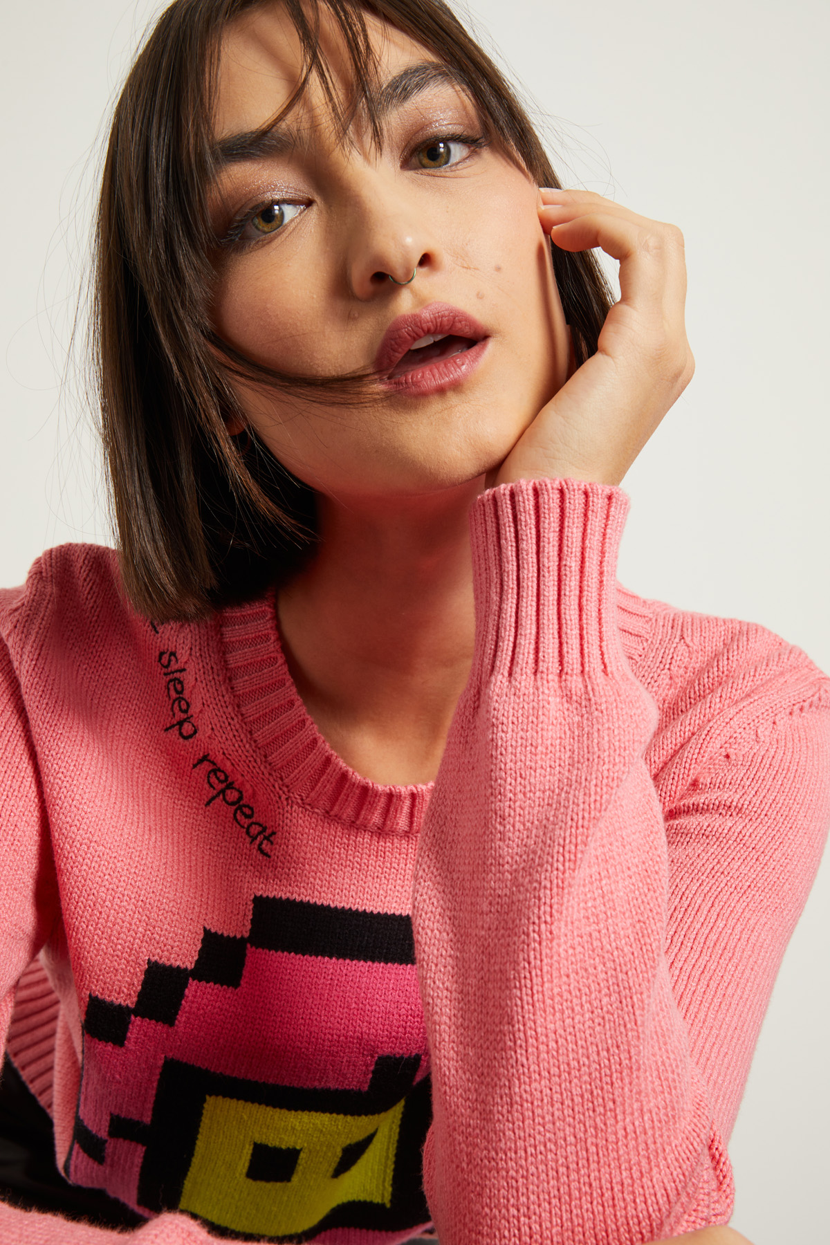 Maglia con intarsio e ricami