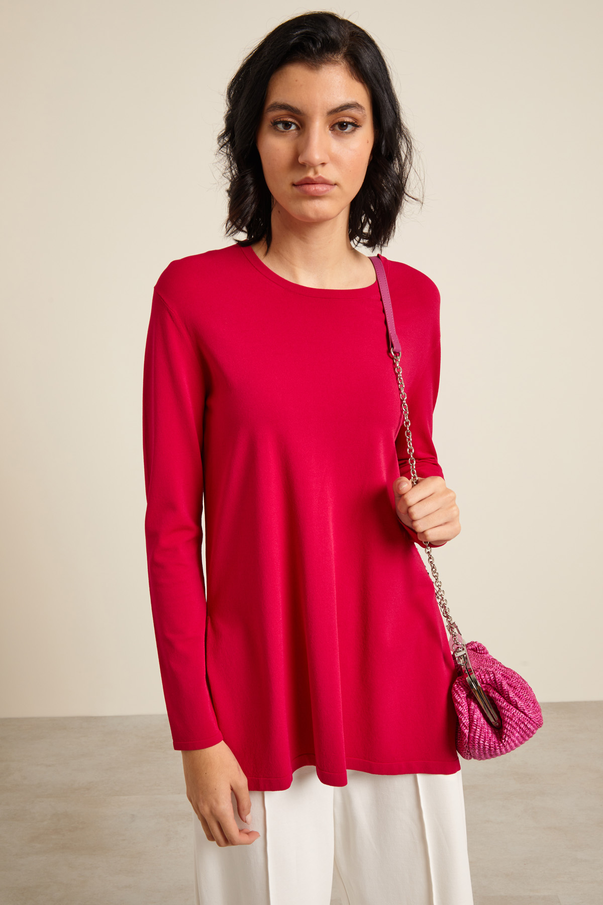 Maglia dalla linea dritta realizzata in jersey di viscosa, con scollo a giro, maniche lunghe e spacchi laterali al fondo.