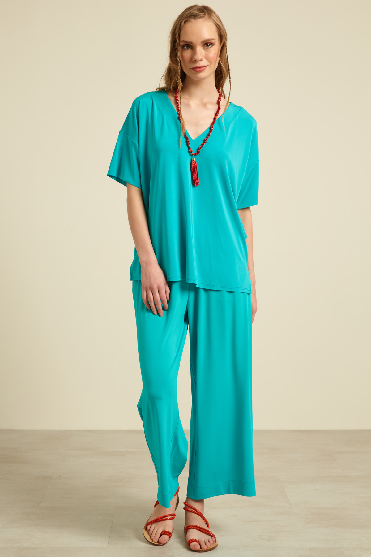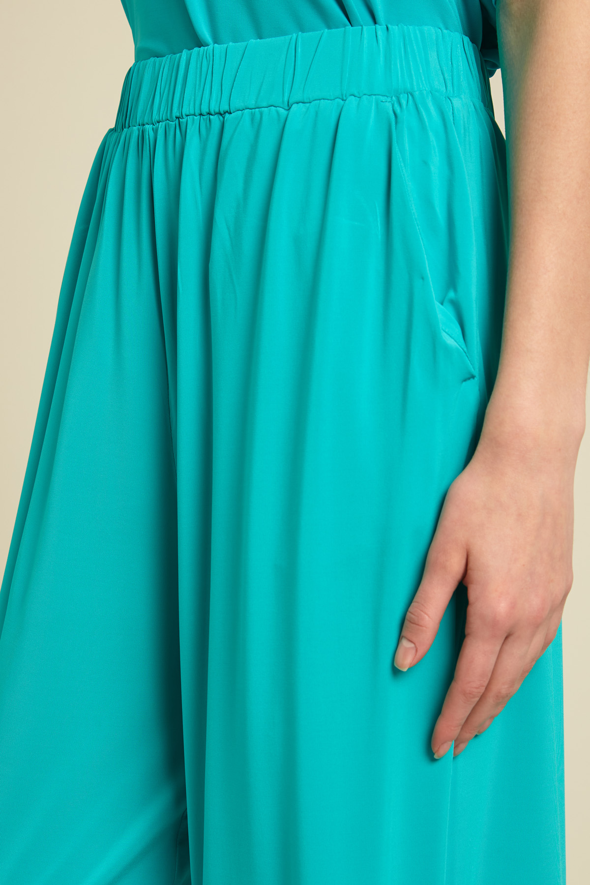 Pantaloni dalla linea morbida realizzati in jersey di viscosa, con inserto elastico in vita e tasche alla francese.