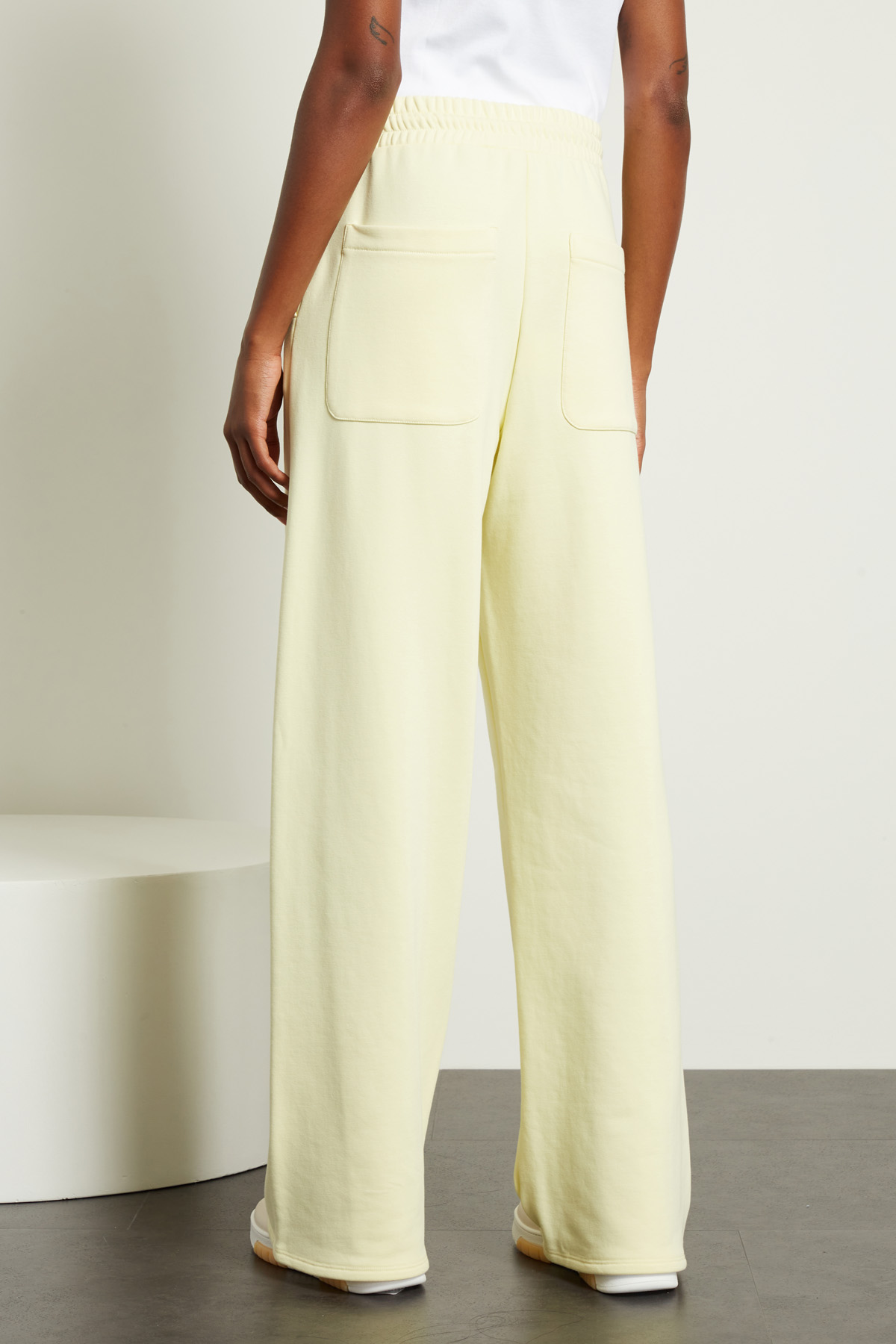 Pantaloni dalla linea morbida realizzati in jersey pesante di misto cotone stretch, inserto elastico e coulisse in vita, tasche laterali alla francese e applicate nel retro.