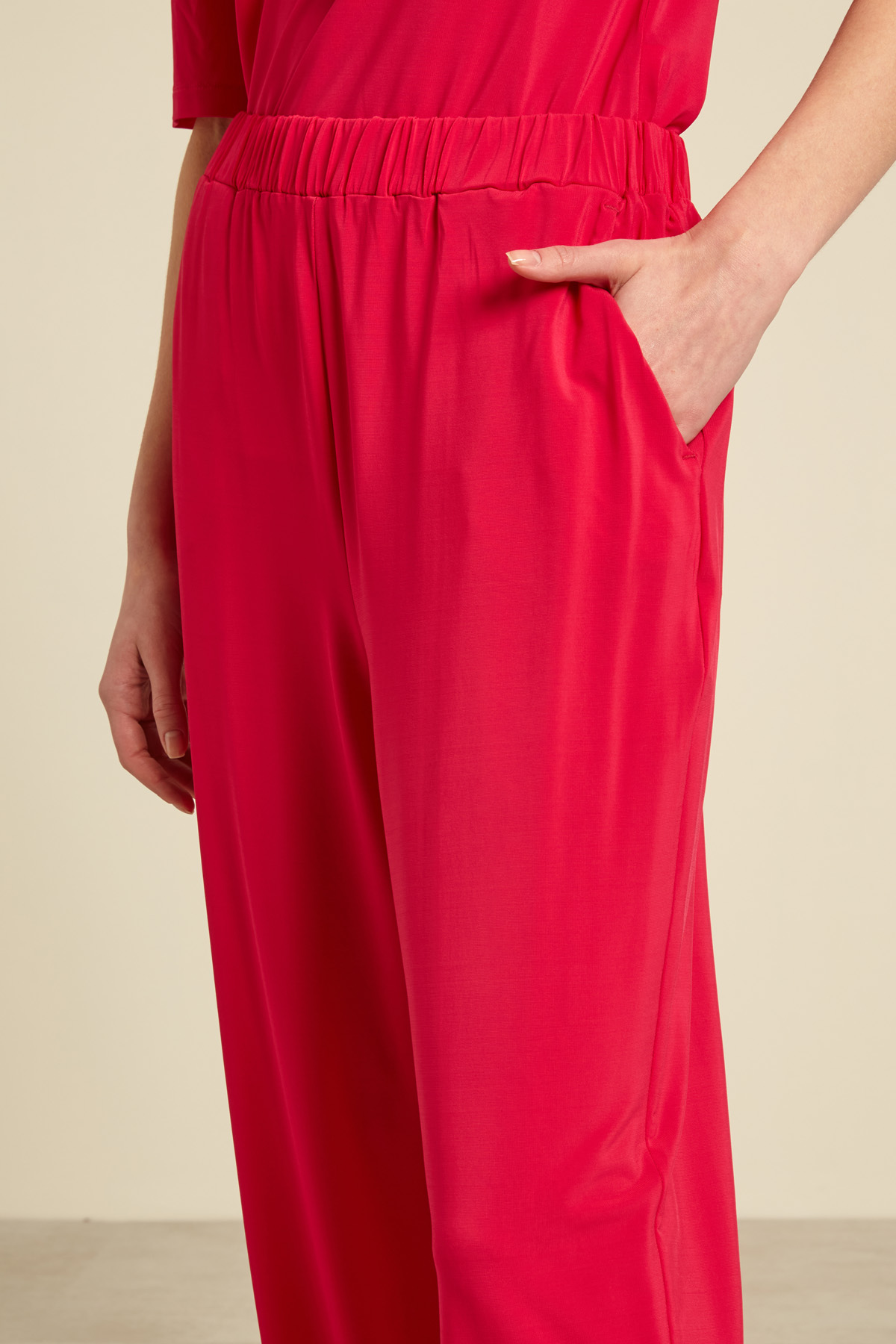 Pantaloni dalla linea fluida realizzati in jersey tecnico di misto viscosa stretch, con inserto elastico in vita e tasche alla francese.
