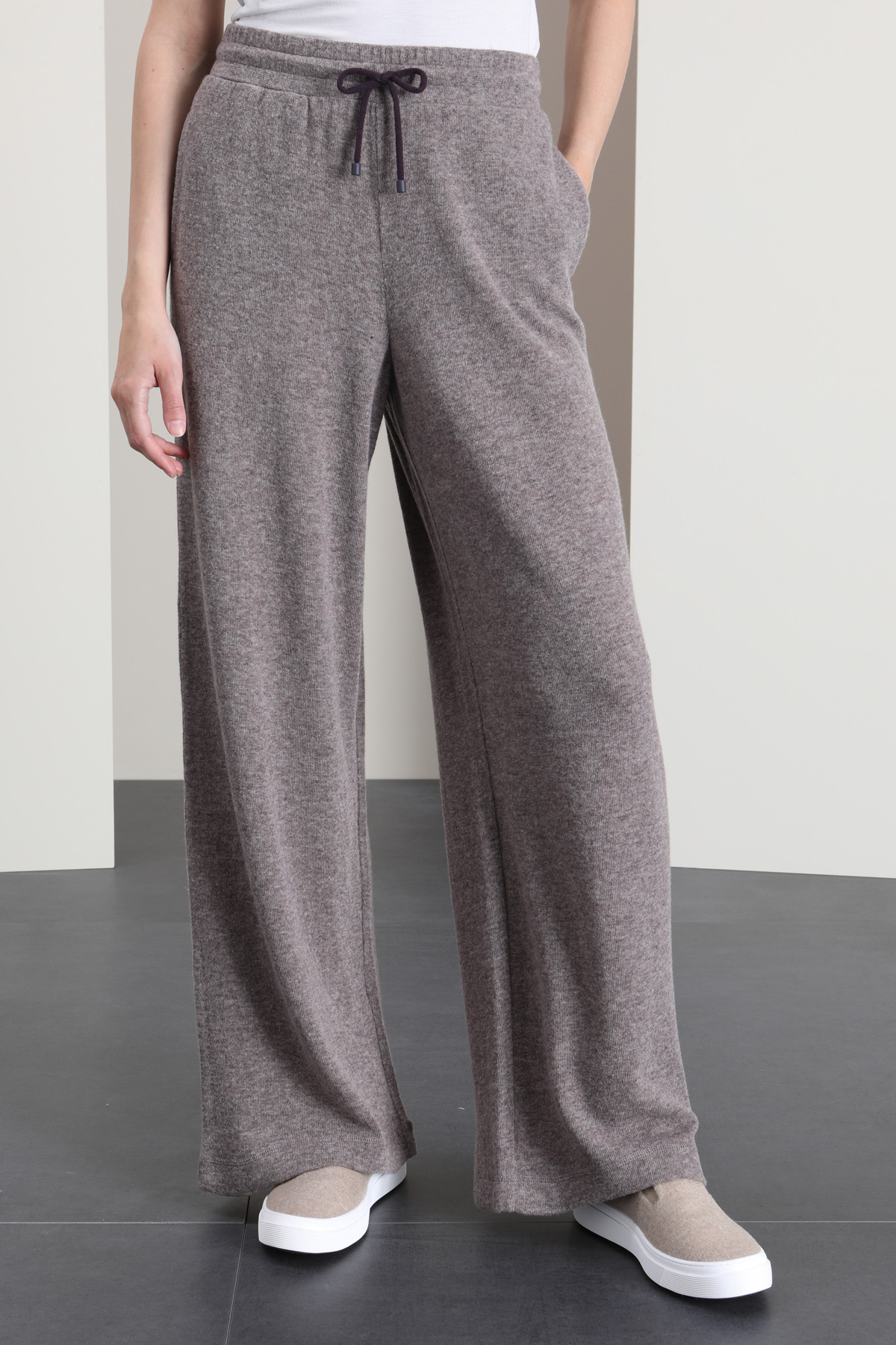 Pantaloni jogger dalla linea morbida realizzati in maglia di misto lana stretch, con inserto elastico in vita e coulisse, tasche laterali inserite in cucitura e applicate sul retro.