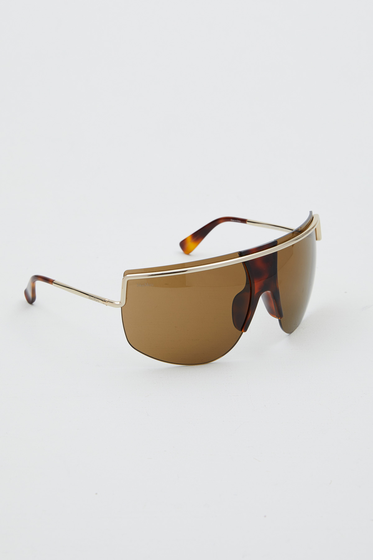 Occhiali da sole a mascherina realizzati in metallo con inserti in resina, montatura sottile e lenti over sfumate.
