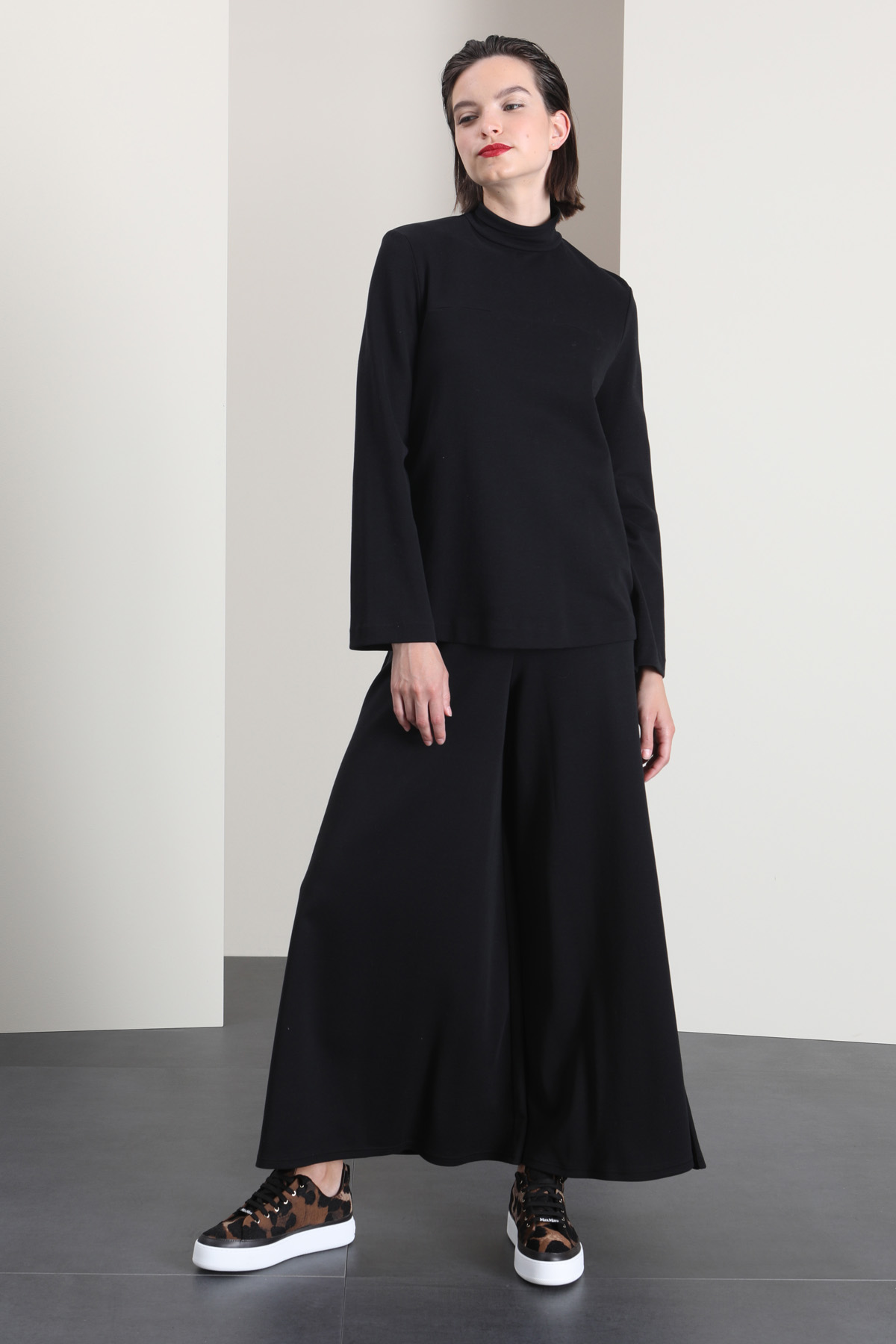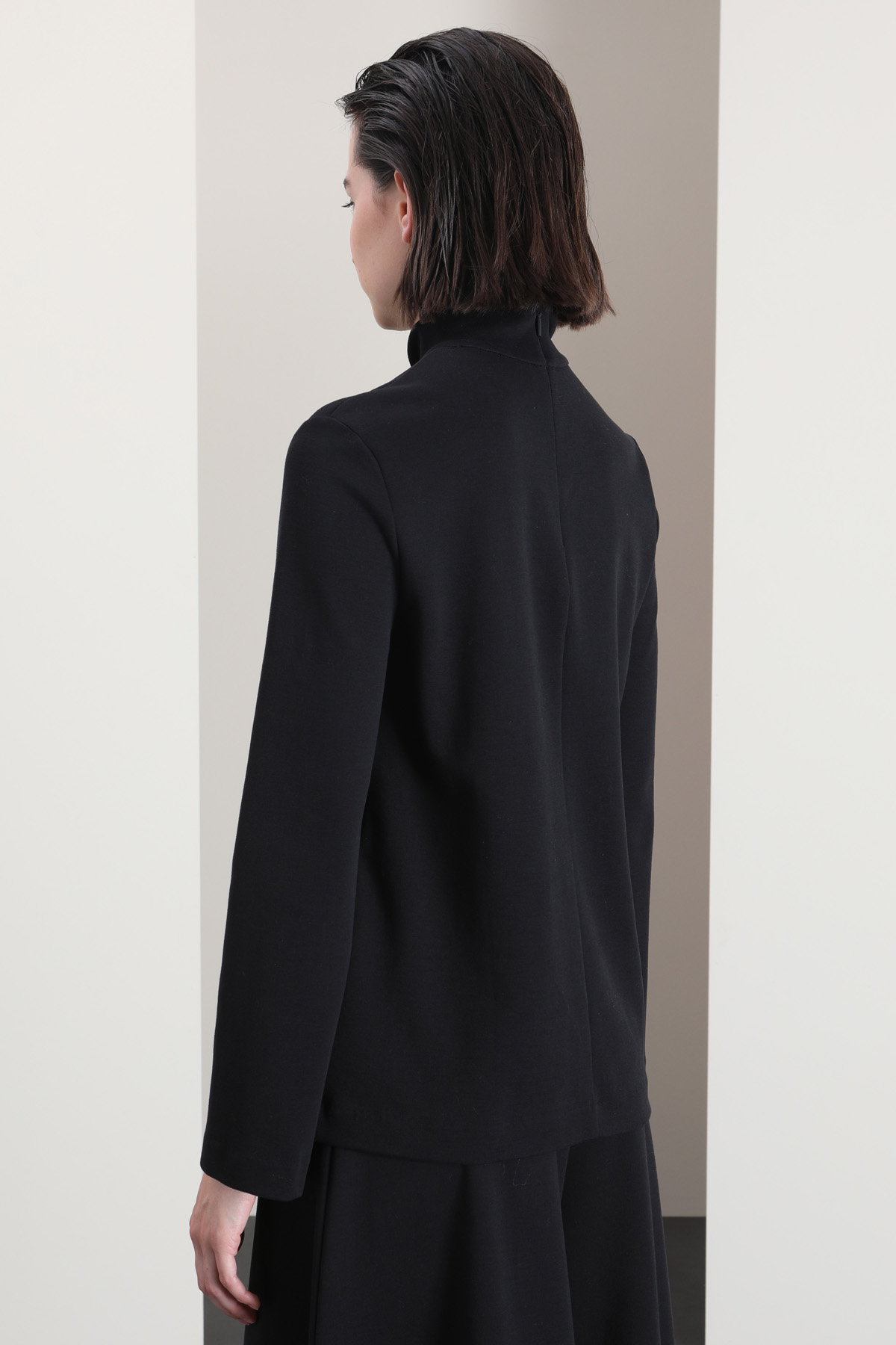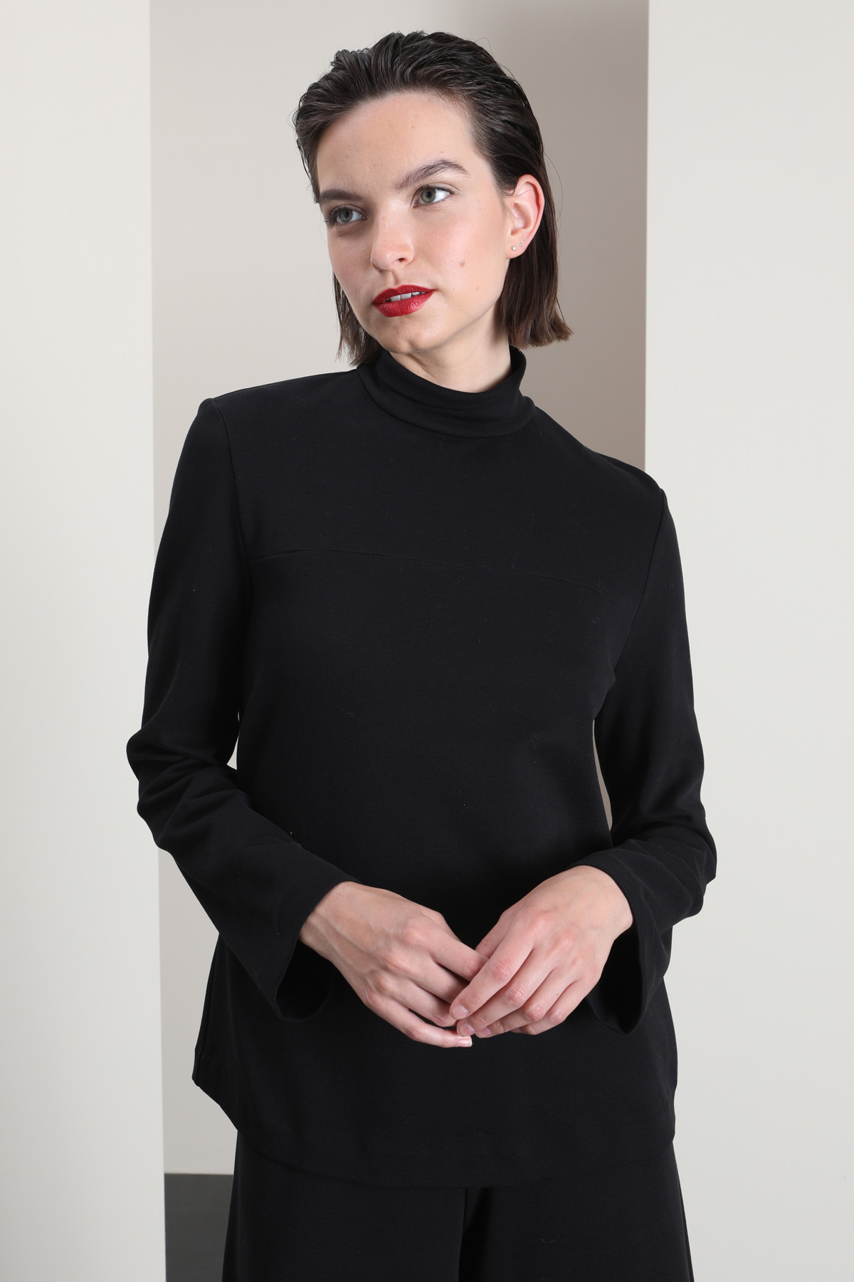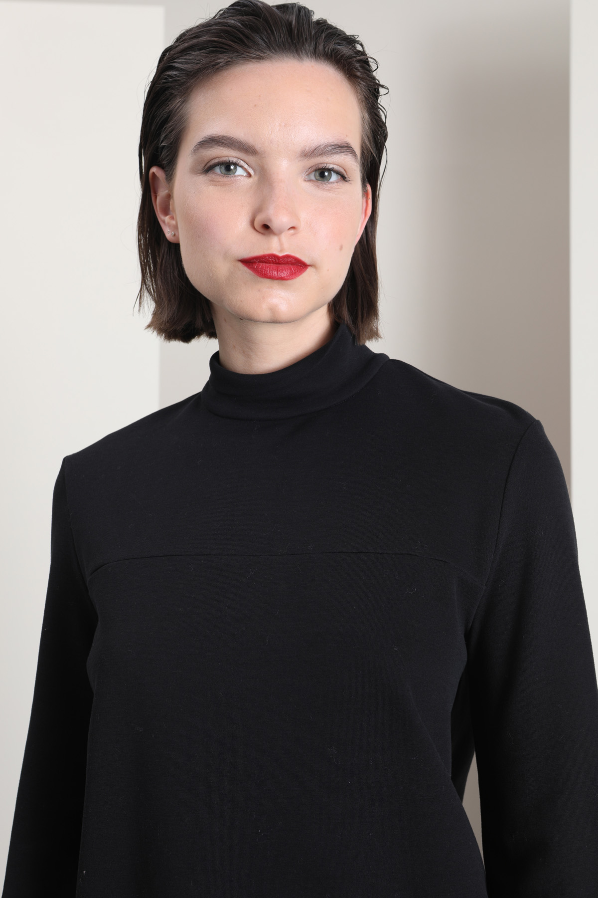 Dolcevita dalla linea dritta realizzato in jersey di misto cotone, con maniche lunghe e allacciatura tramite zip invisibile sul retro.