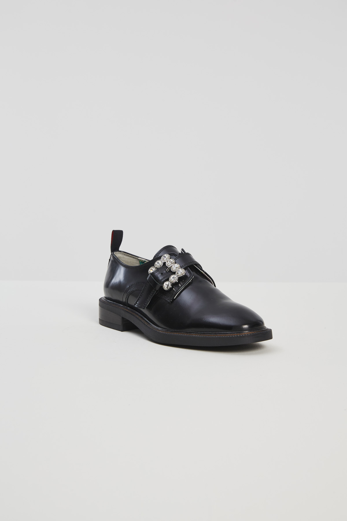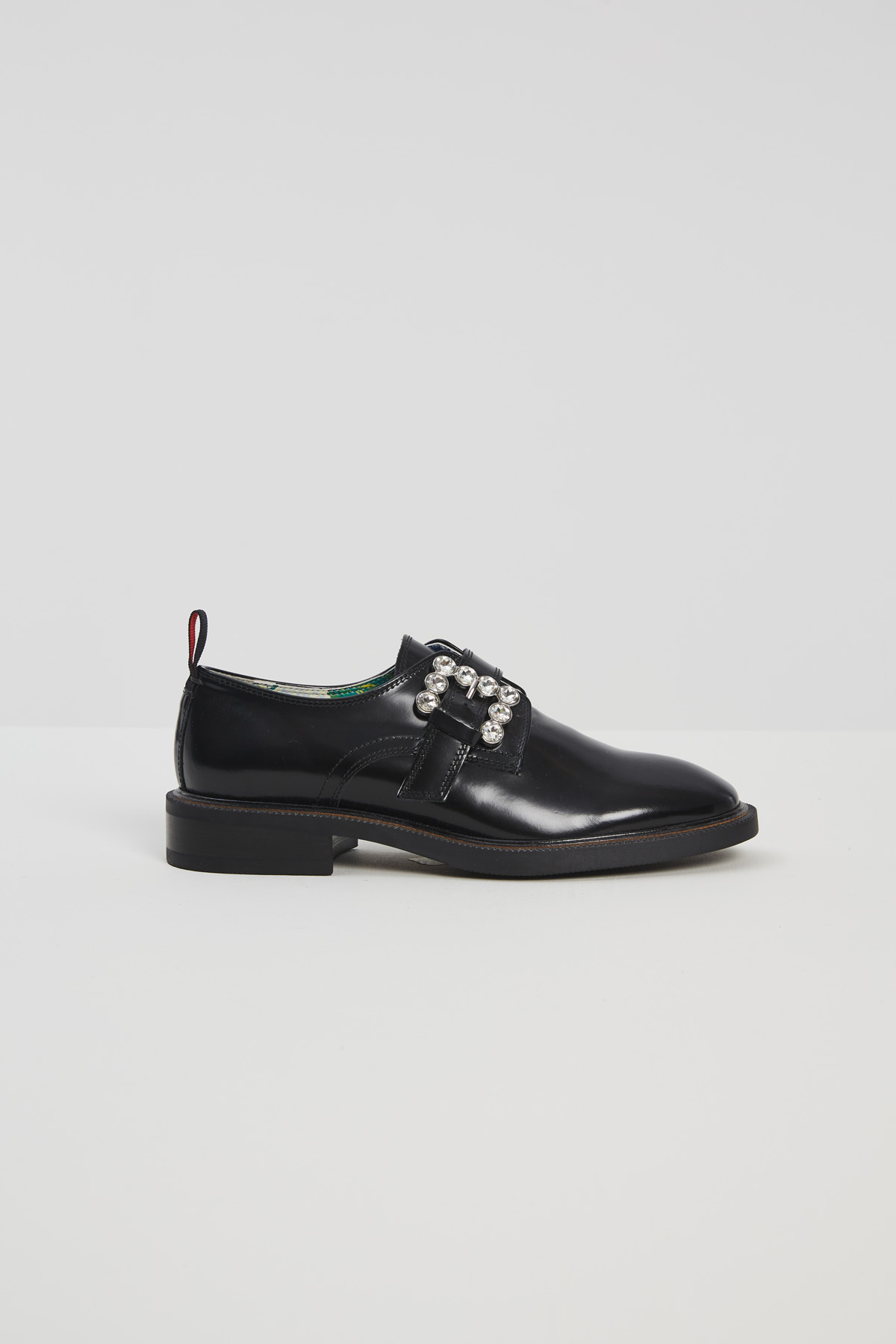 Stringate realizzate in pelle con punta arrotondata e dettaglio di fibbia gioiello. Suola in gomma.