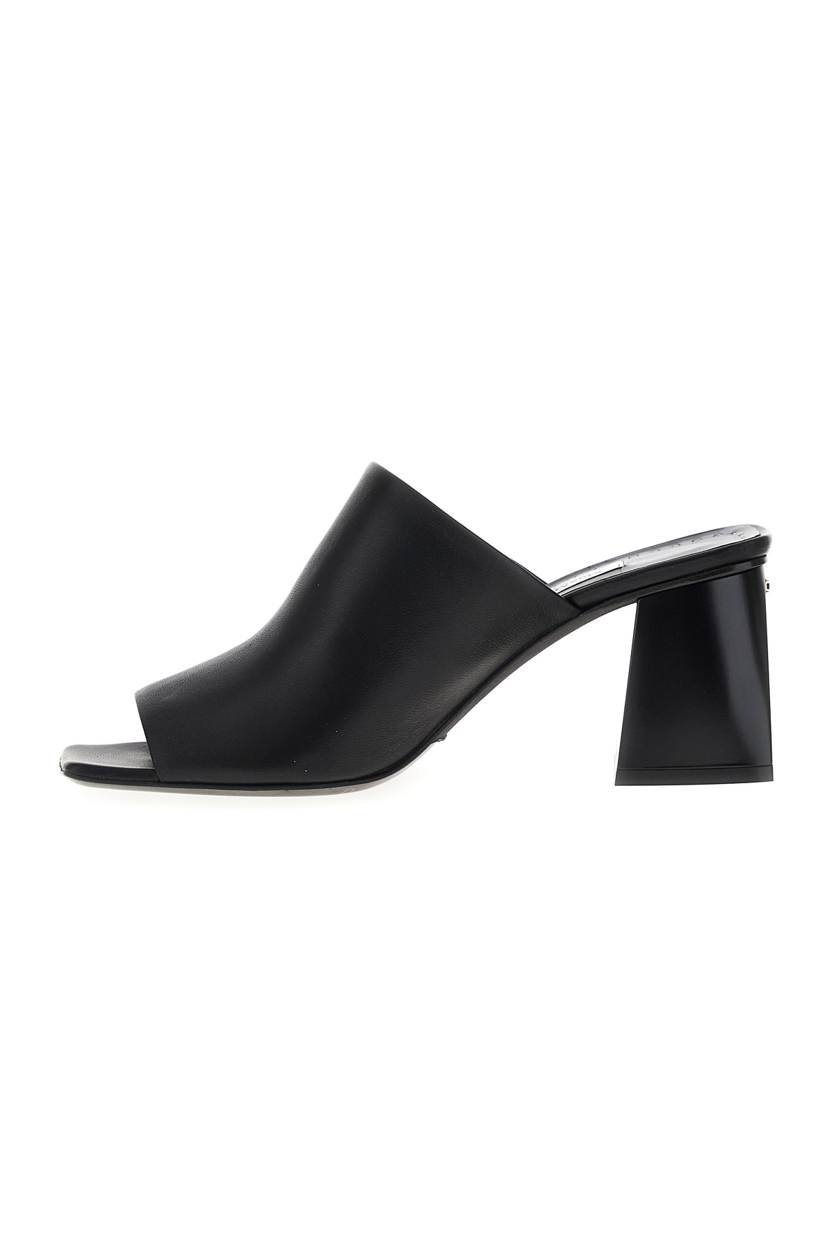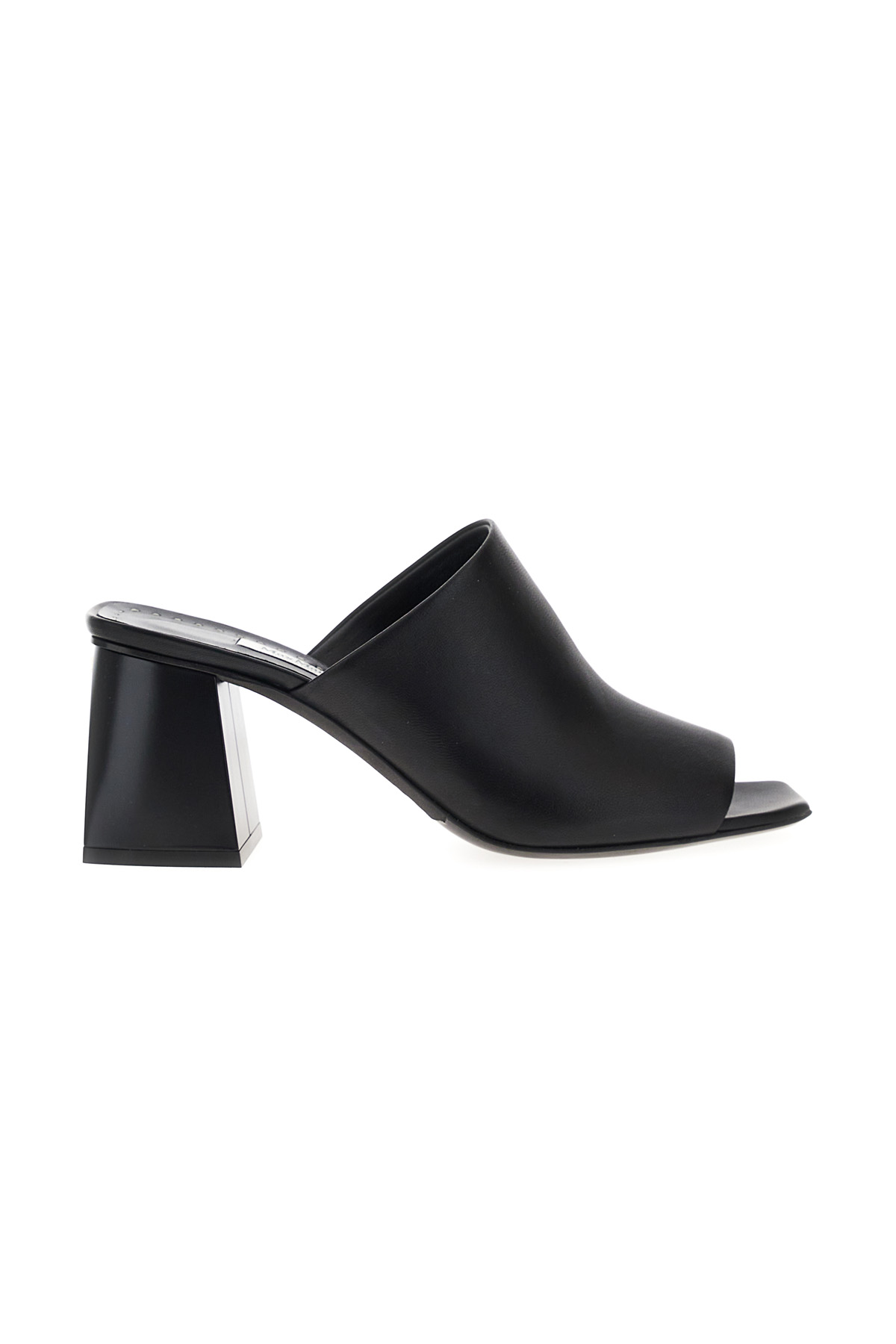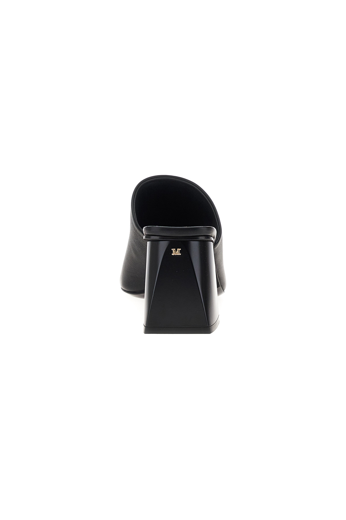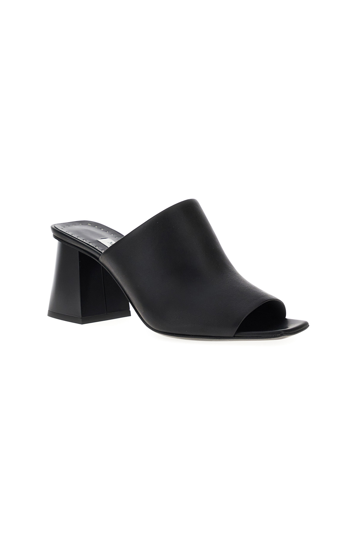 Mule open toe in nappa, con punta squadrata, tacco ampio e suola in cuoio.