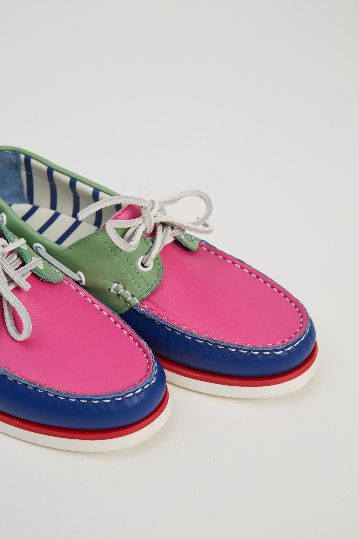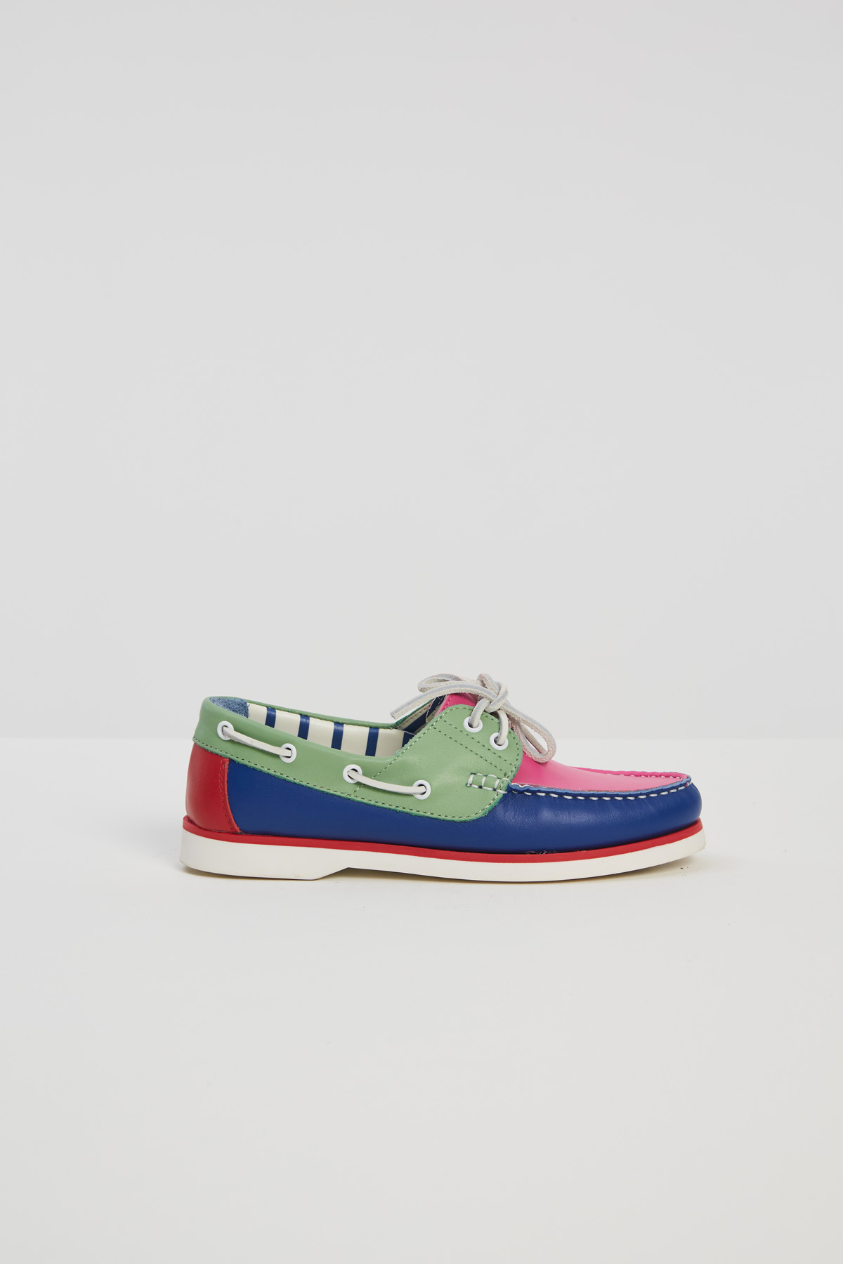 Mocassini realizzati in vera pelle, con punta stondata e dettaglio di occhielli in metallo. Chiusura tramite lacci. Suola in gomma.