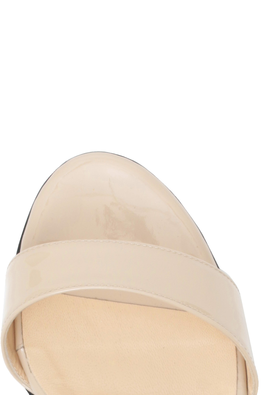 Sandali realizzati in vera pelle verniciata, con fascia singola, tacco a stiletto e chiusura tramite cinturino alla caviglia. Fodera in pelle, suola in cuoio.