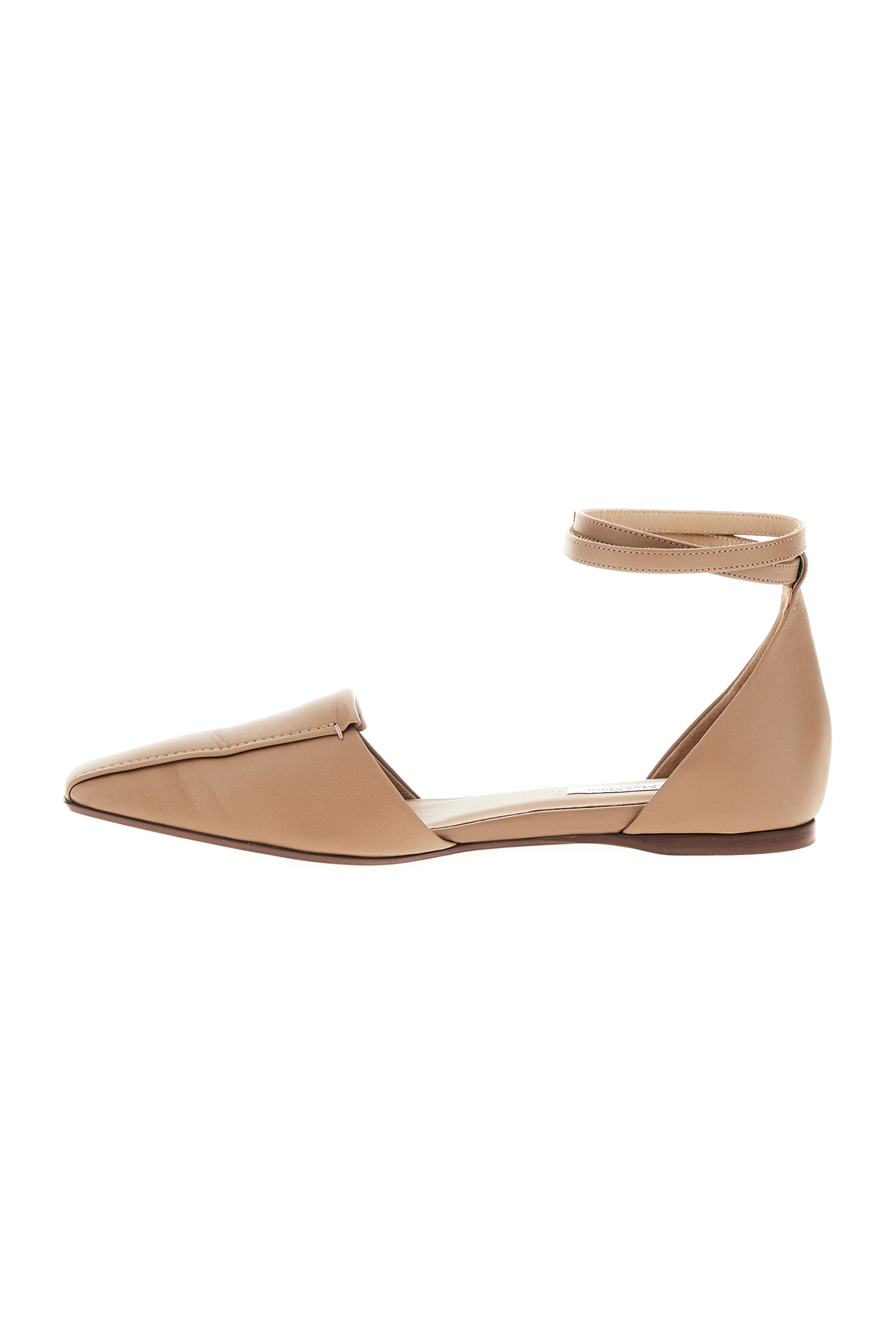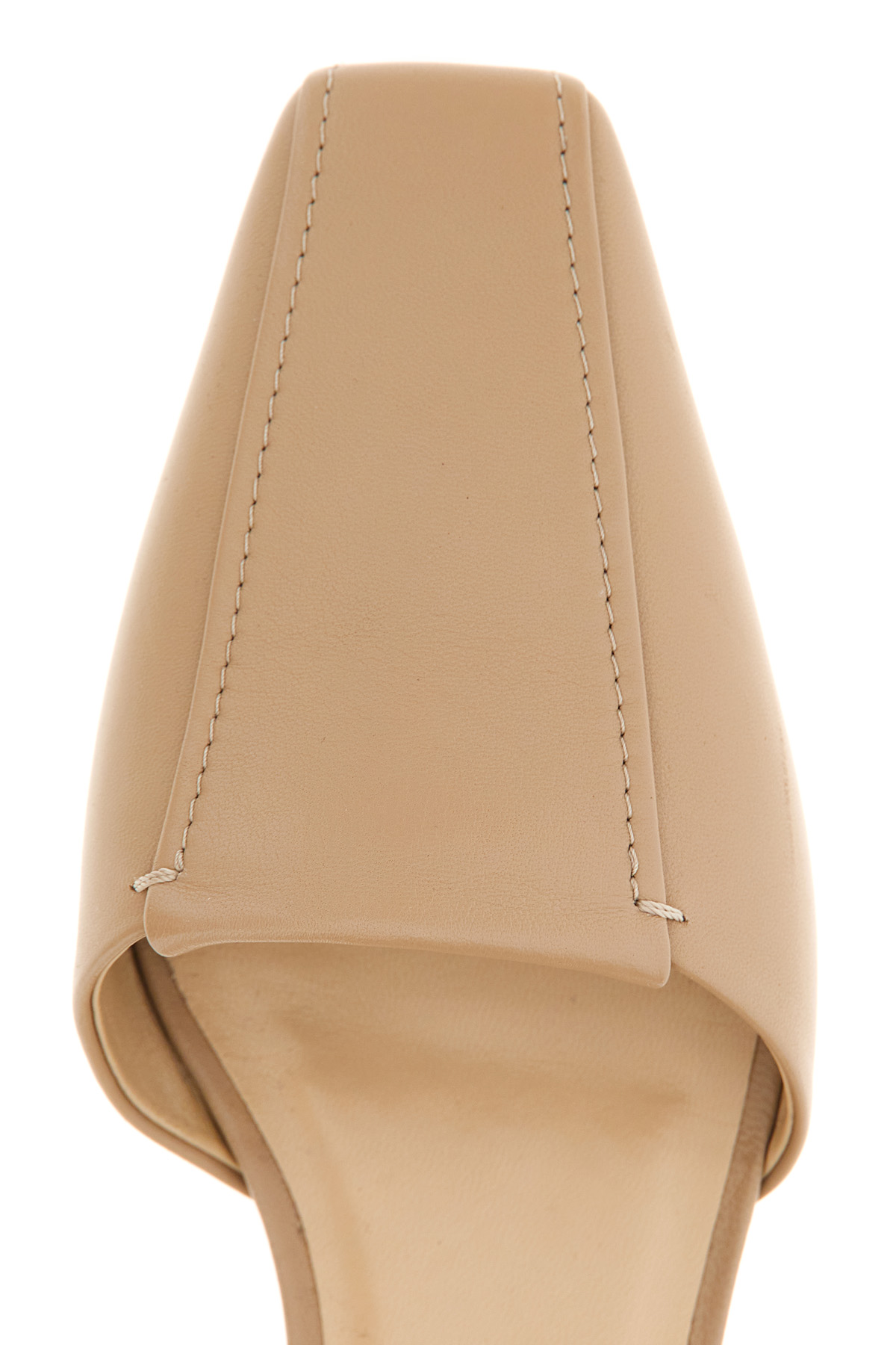 Sandali realizzati in vera pelle, con punta squadrata e allacciatura tramite cinturino alla caviglia. Suola in cuoio.