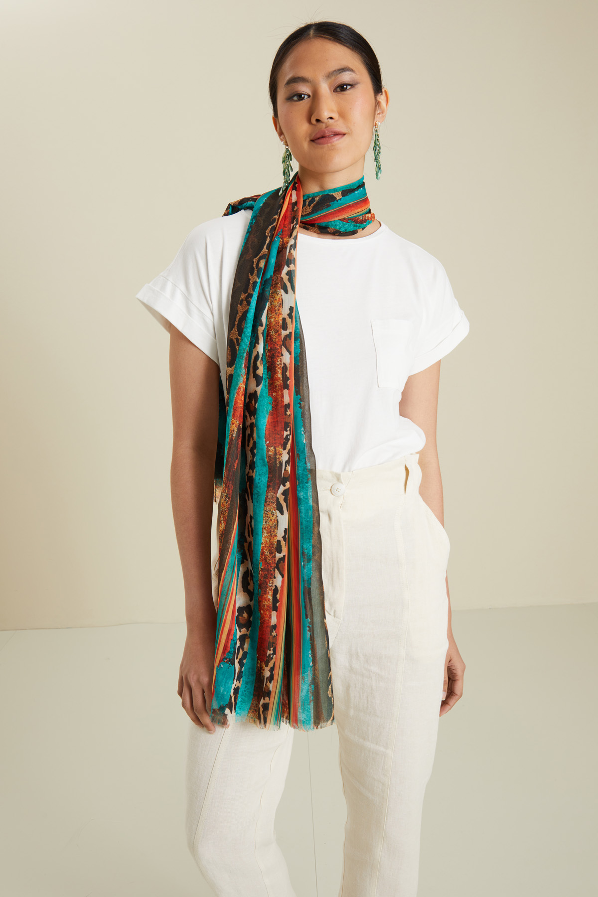 Stola realizzata in chiffon stampato con bordi sfrangiati.