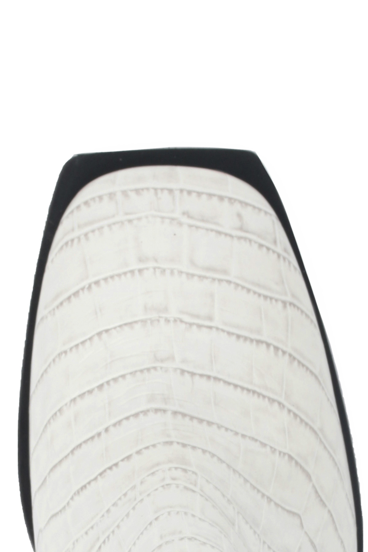 Stivaletti realizzati in vera pelle dal stampa cocco, con punta e tacco squadrati, chiusura tramite zip nel lato interno. Fodera in montone, suola in gomma.