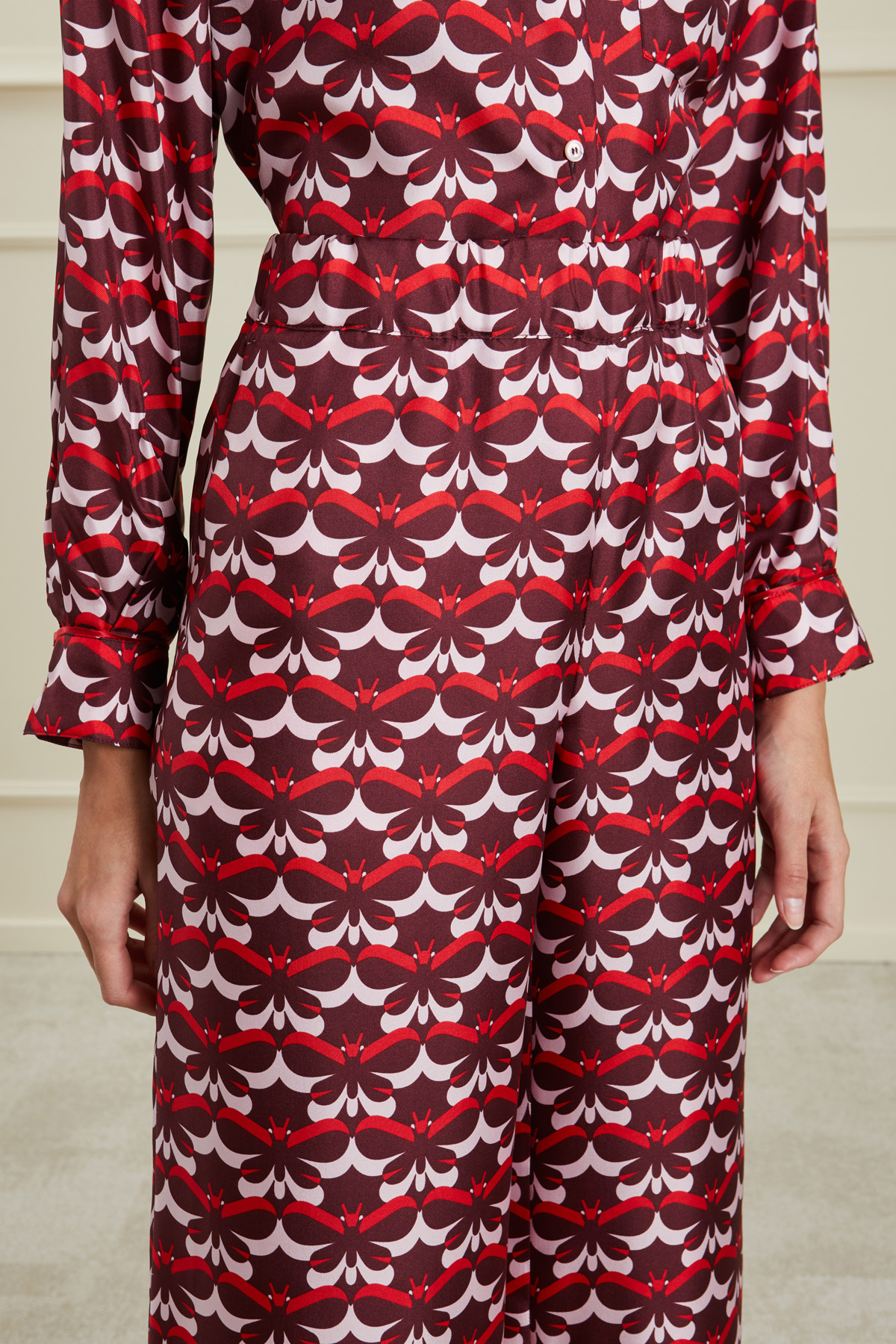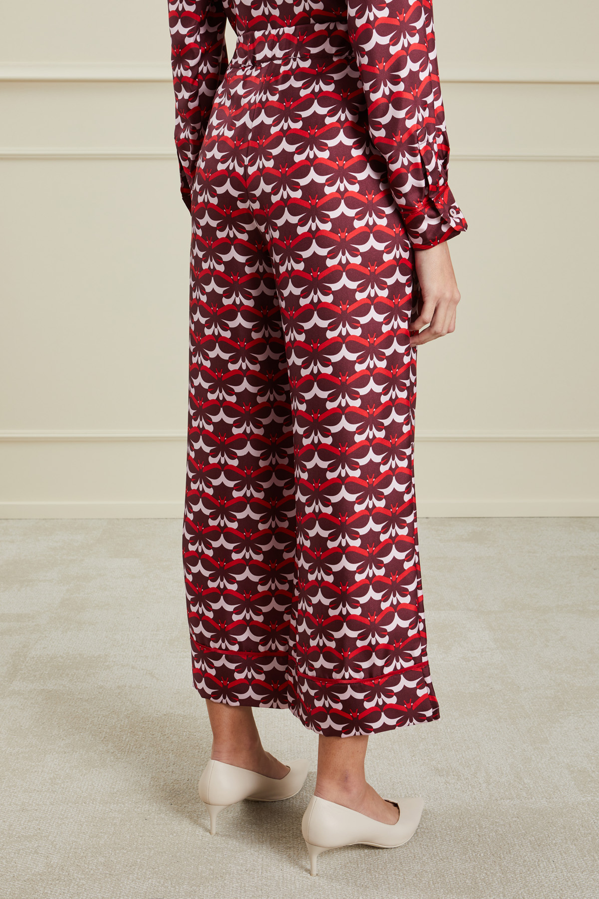Pantaloni dalla linea fluida realizzati in twill di pura seta stampata, con inserto elastico al punto vita, tasche laterali alla francese e risvolto al fondo.