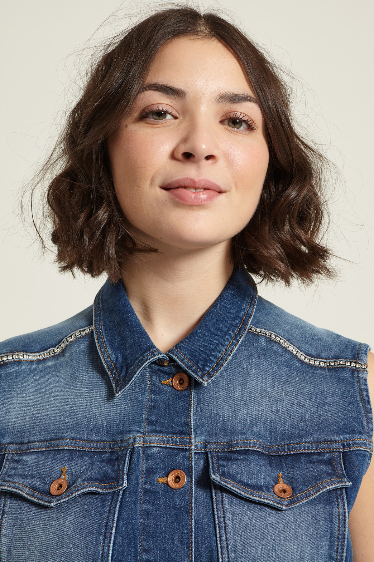 Gilet in denim con strass