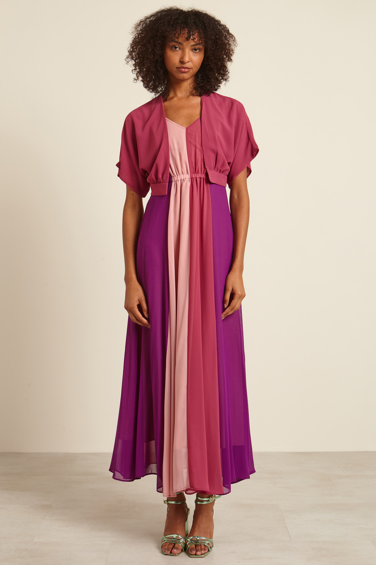 Coprispalle dalla linea morbida realizzato in georgette, con maniche corte a kimono e motivo di arricciatura.