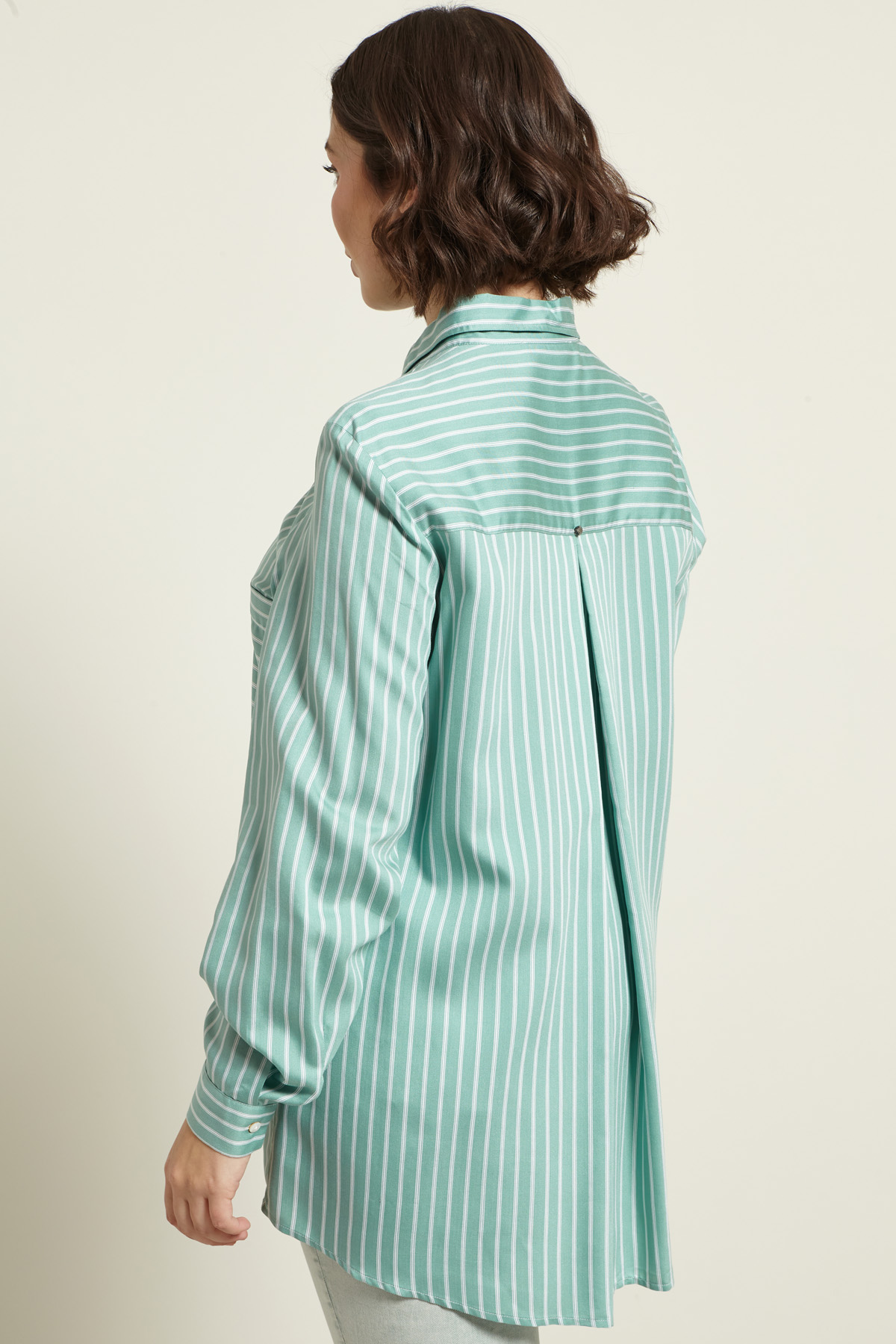 Camicia dalla linea fluida realizzata in twill di misto viscosa stampato, con collo classico, maniche lunghe con polsino e bottone, tasche applicate sul petto, carrè e contropiega nel retro. Allacciatura tramite bottoni a vista.