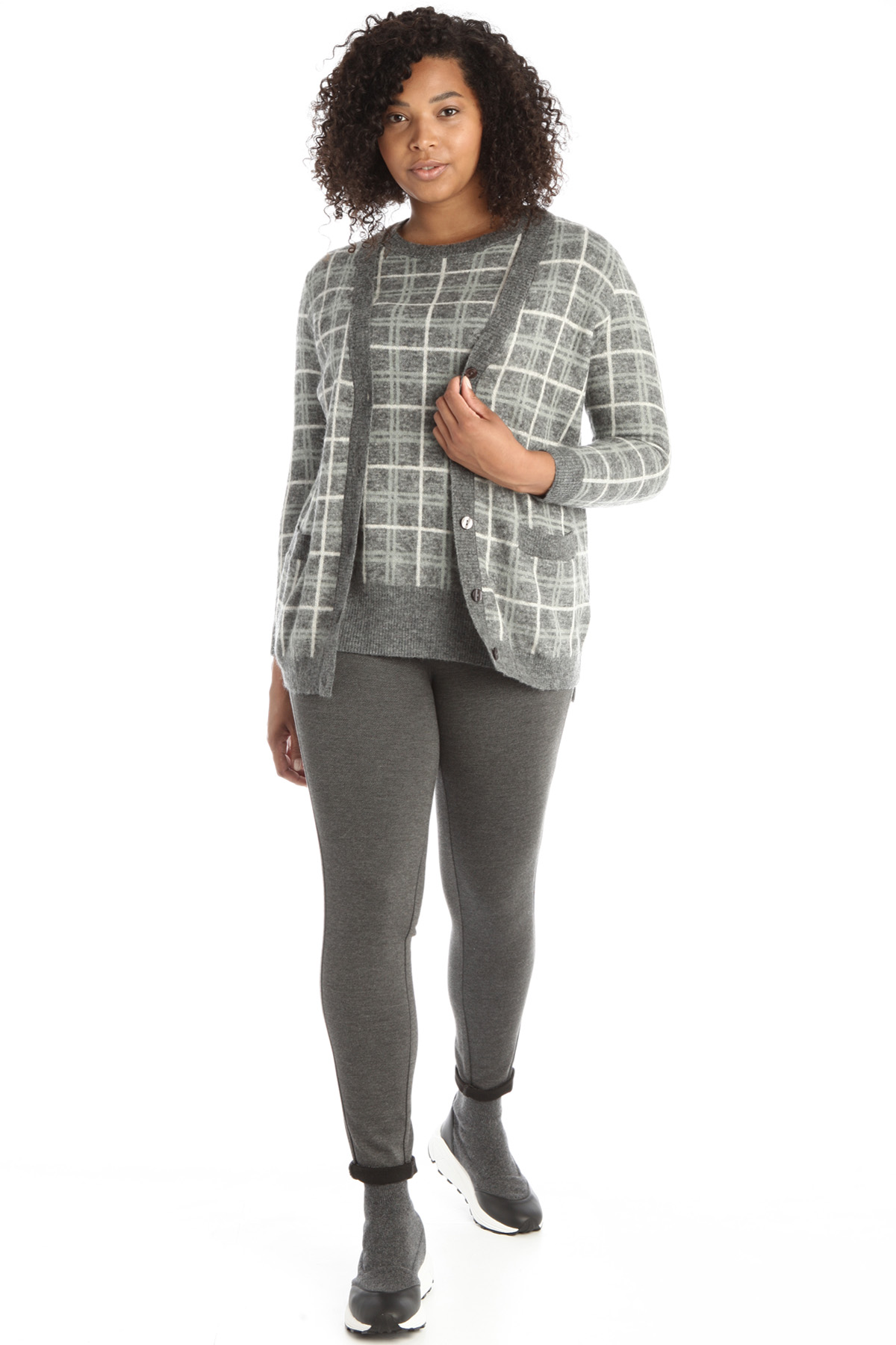 - Maglia 52% poliammide, 26% acrilica, 12% lana, 10% mohair; bordi 57% poliammide, 22% acrilica, 10% mohair, 10% lana, 1% elastan.